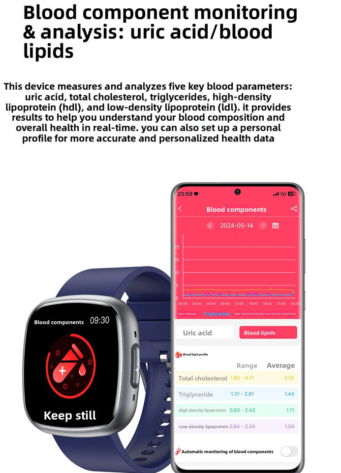 สมาร์ทวอทช์รุ่นใหม่ขายดีที่สุด ET593 พร้อมฟังก์ชันตรวจวัดคลื่นไฟฟ้าหัวใจ (ECG) และการเปลี่ยนแปลงของเลือด (PPG) ตรวจวัดกรดยูริกและไขมันในร่างกาย ชาร์จผ่าน USB ตัวเรือนโลหะและซิลิกาเจล รองรับการโทร