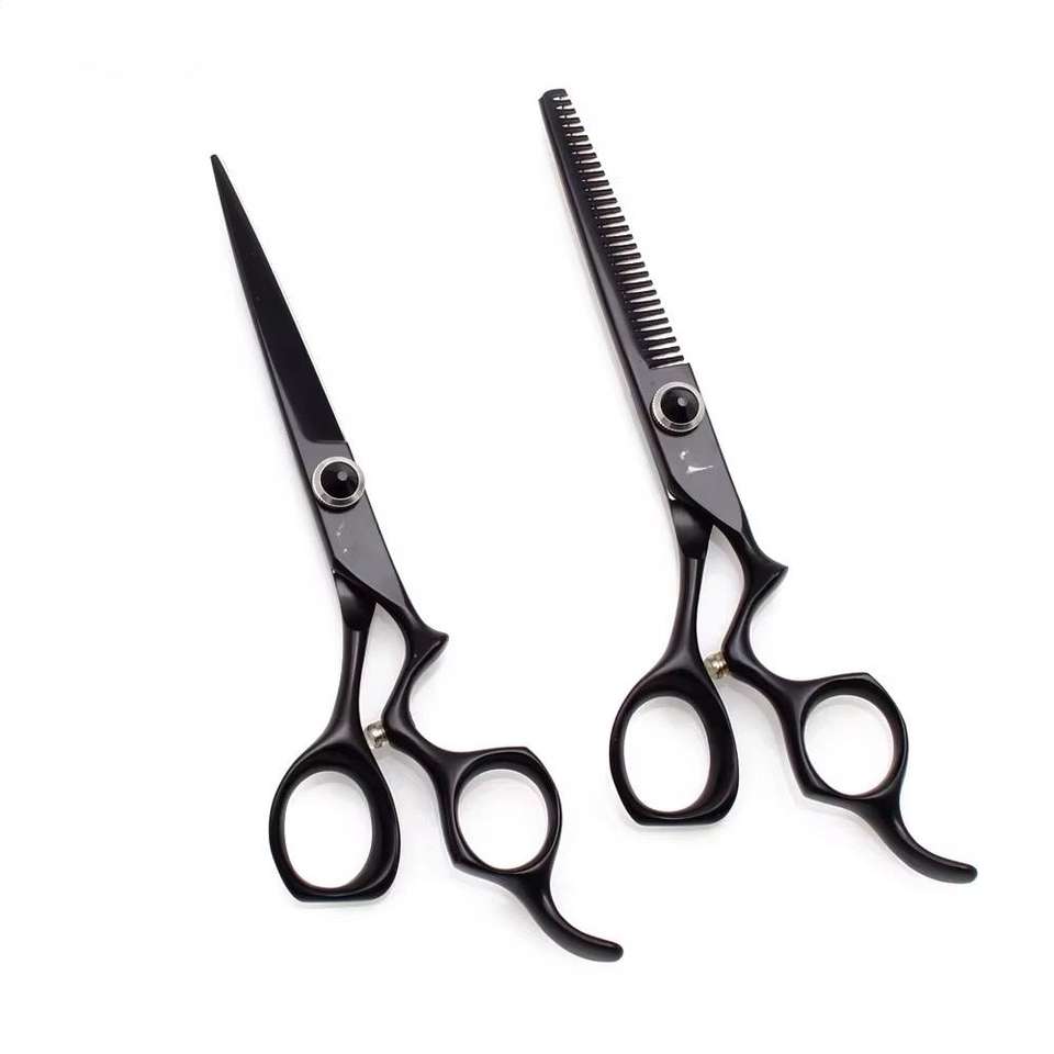 ชุดต้นแบบแบล็คเอาท์สีดำด้านดีไซน์ตามหลักสรีรศาสตร์ชุดมีดตัดและกรรไกรบางไทเทเนียมสไตลิสต์คู่