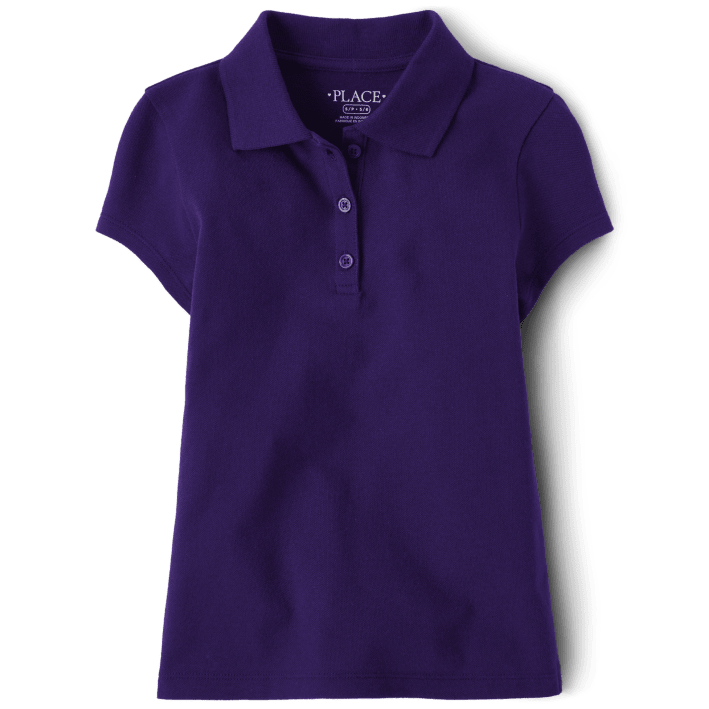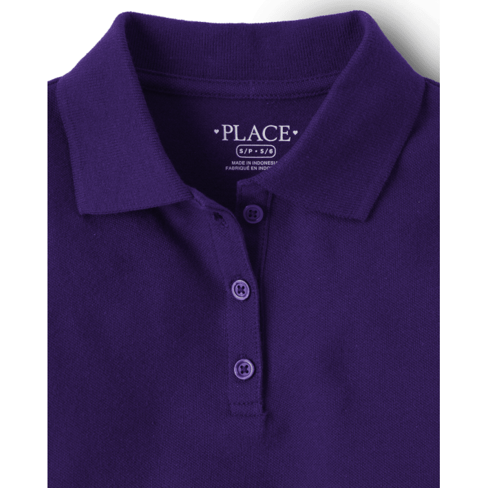 ชุดนักเรียนโปโลยืดหยุ่นนุ่มลายจุดสีม่วงสำหรับเด็กใส่สบาย2แพ็ค