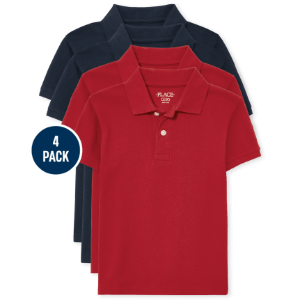 ชุดนักเรียนโปโลลายปิคิว4แพ็คสำหรับเด็กใส่ได้พอดีมีหลายสี
