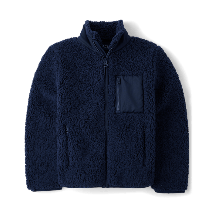 100% polyester sherpa body,100% polyester pongee pocketFabrication