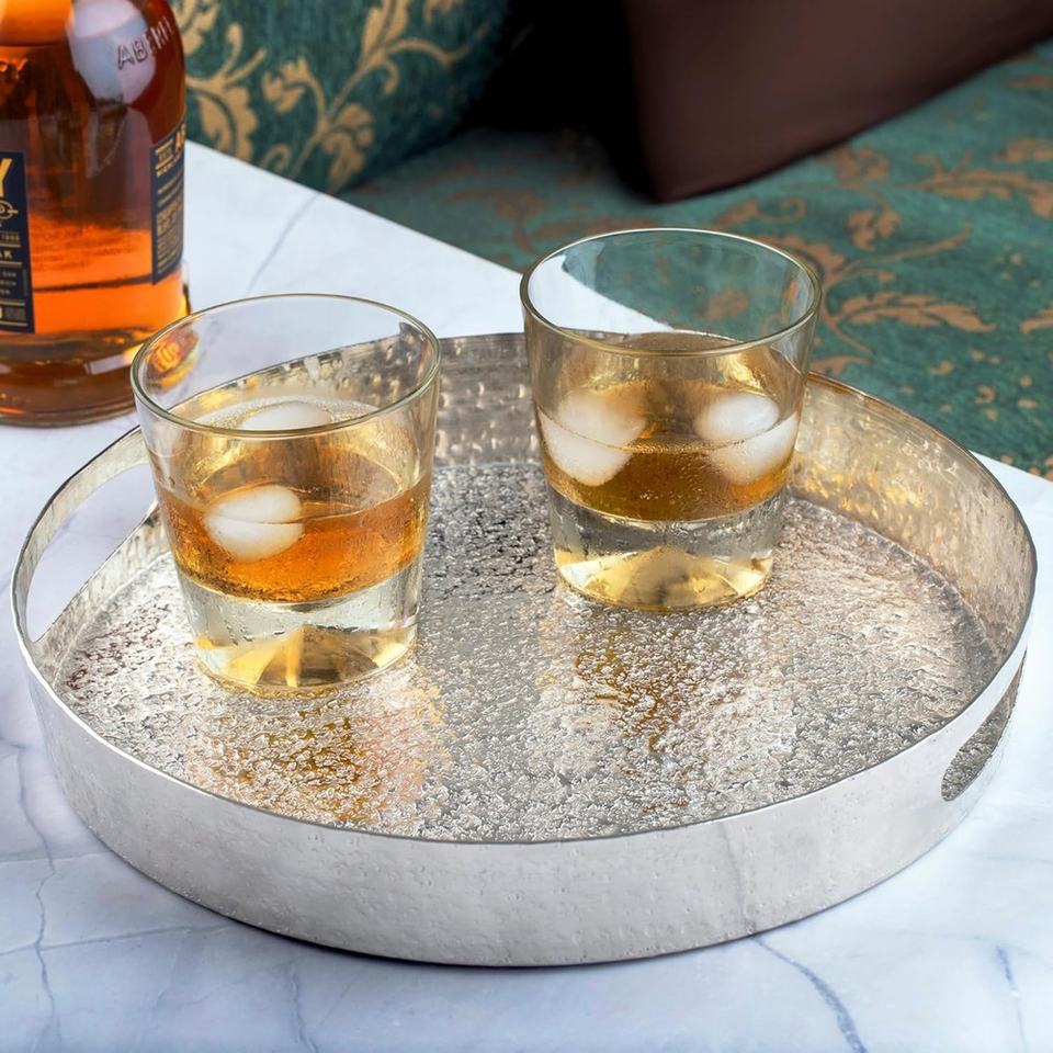 ถาดเสิร์ฟเหล็กเคลือบทองคำ ดีไซน์สวยงาม ทนทาน อเนกประสงค์ สำหรับเสิร์ฟเครื่องดื่ม ขนมขบเคี้ยว ตกแต่งอย่างมีสไตล์