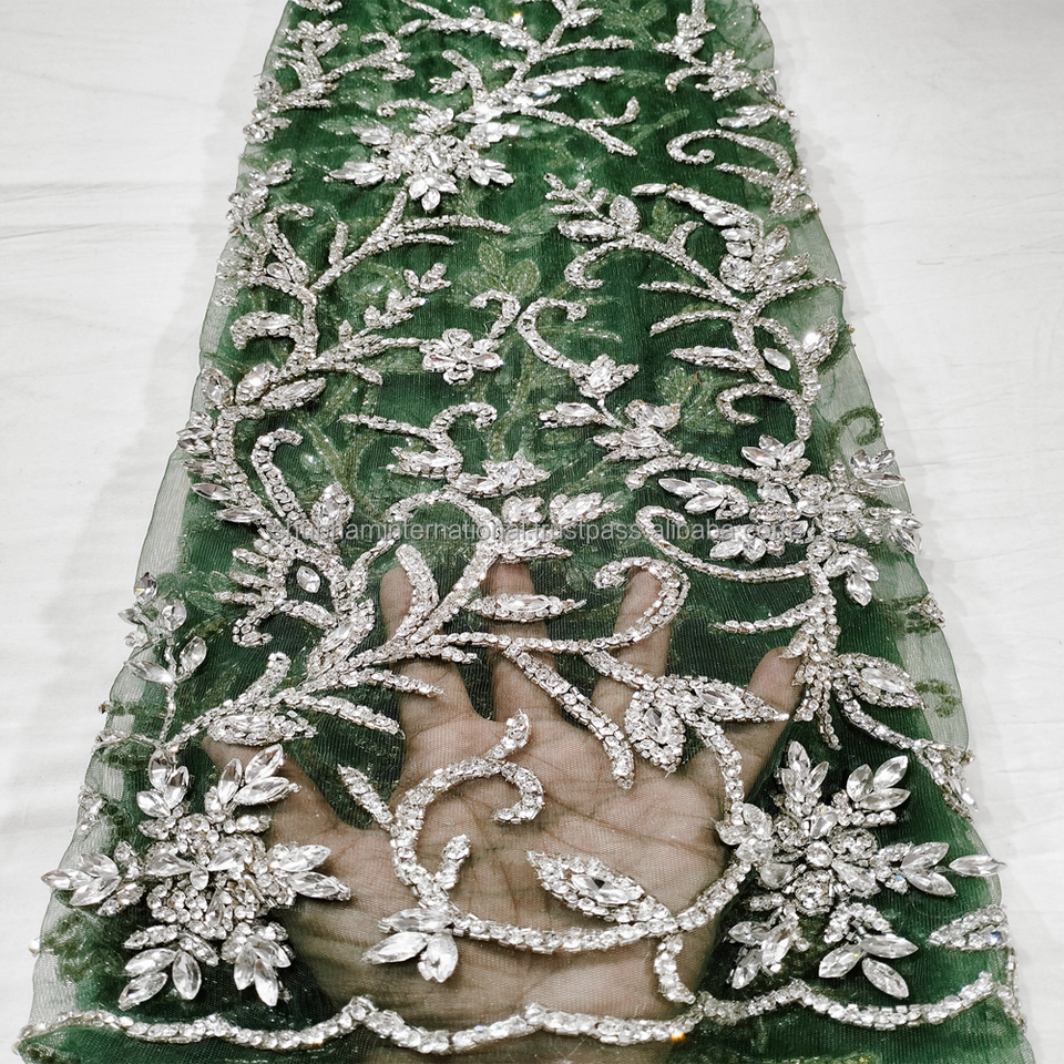 ผ้าลูกไม้สีดำพรีเมียมคอลเลคชั่นเอ็มเพรส ประดับด้วยคริสตัล งานปักหนัก 100% โพลีเอสเตอร์ ลายดอกไม้ น้ำหนักเบา ผ้าทำมือสำหรับตัดเย็บชุด