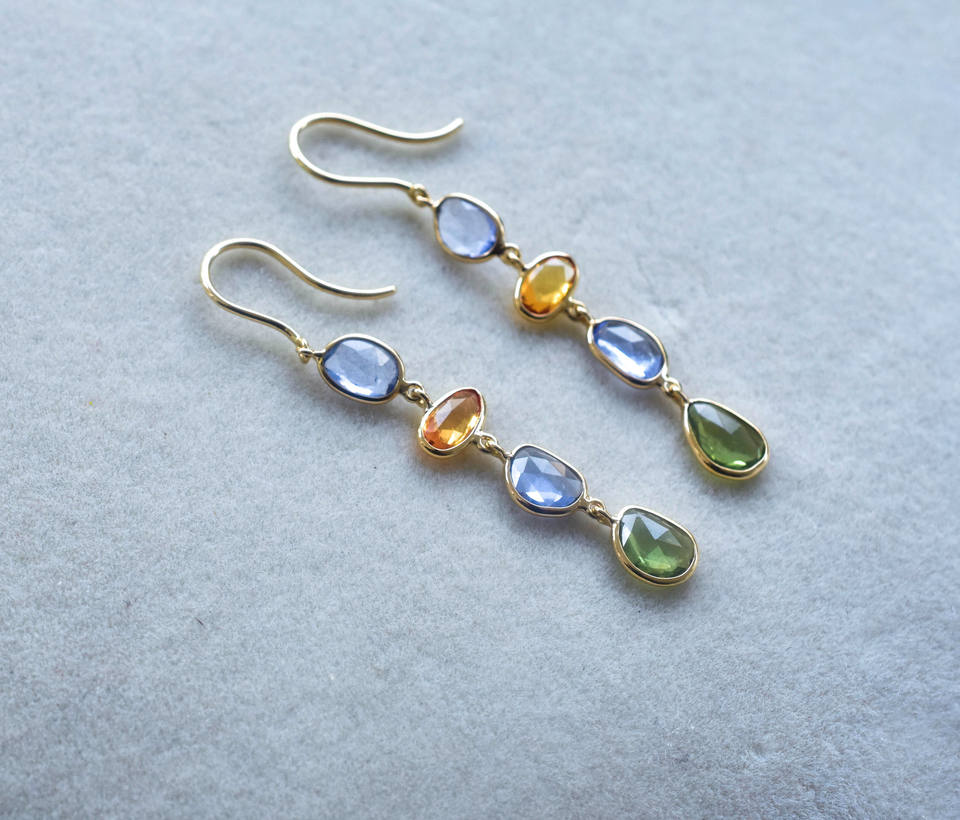 ต่างหูไพลินสีกุหลาบตัดทำมือหลากสีสีสีรุ้งบริสุทธิ์18K