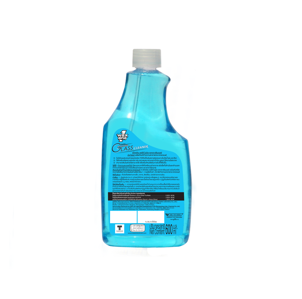 ผลิตภัณฑ์ทำความสะอาดกระจกรถยนต์จาก Waxone จากประเทศไทยขนาด600มล. รีฟิลสีฟ้าจากประเทศไทย
