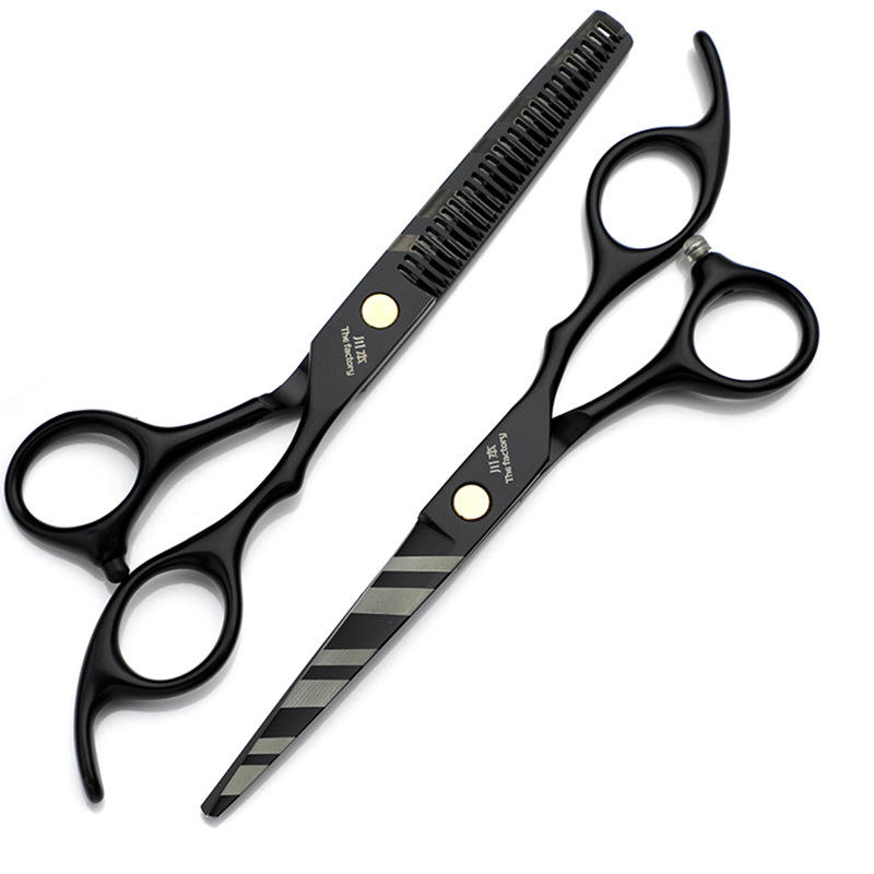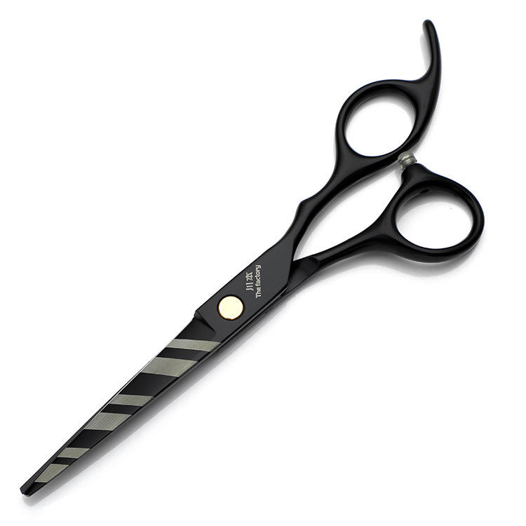 กรรไกรซอยผม 30 ซี่ สีดำลายทาง สำหรับคนถนัดขวา ใช้ในบ้านและฝึกหัด