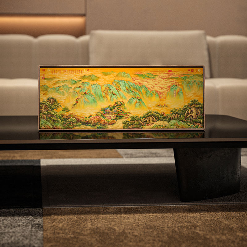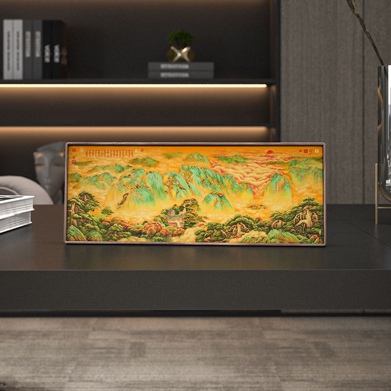 งานศิลปะทองเหลืองห้าภูเขาศักดิ์สิทธิ์ ของตกแต่งโต๊ะทำงานสไตล์จีนใหม่ สำหรับห้องทำงานและสำนักงาน ของขวัญงานฝีมือรูปภูมิทัศน์