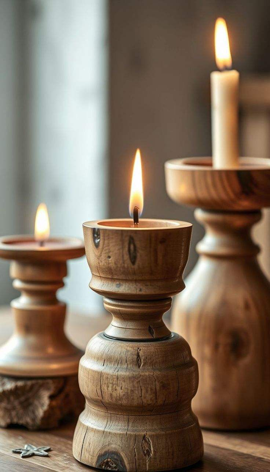 เชิงเทียนไม้ขัดเงาเป็นมิตรกับสิ่งแวดล้อมพร้อมขาตั้งสำหรับตกแต่งบ้านเชิงเทียนแบบโบราณ