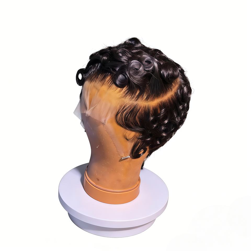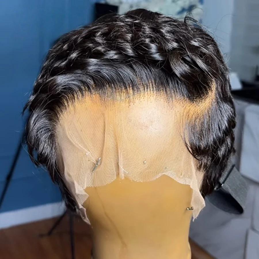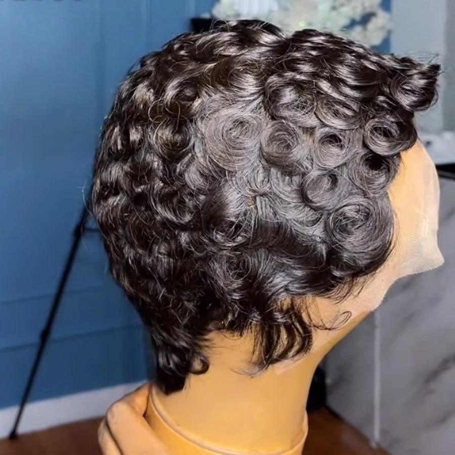 วิกผมชิโอม่าลดราคาสุดฮอต 13x4 HD วิกผมหน้าผากโปร่งใสแบบลูกไม้ วิกผมหยิกทรงพิกซี่ สีดำธรรมชาติ วิกผมแท้ 100% สำหรับคนผิวสี