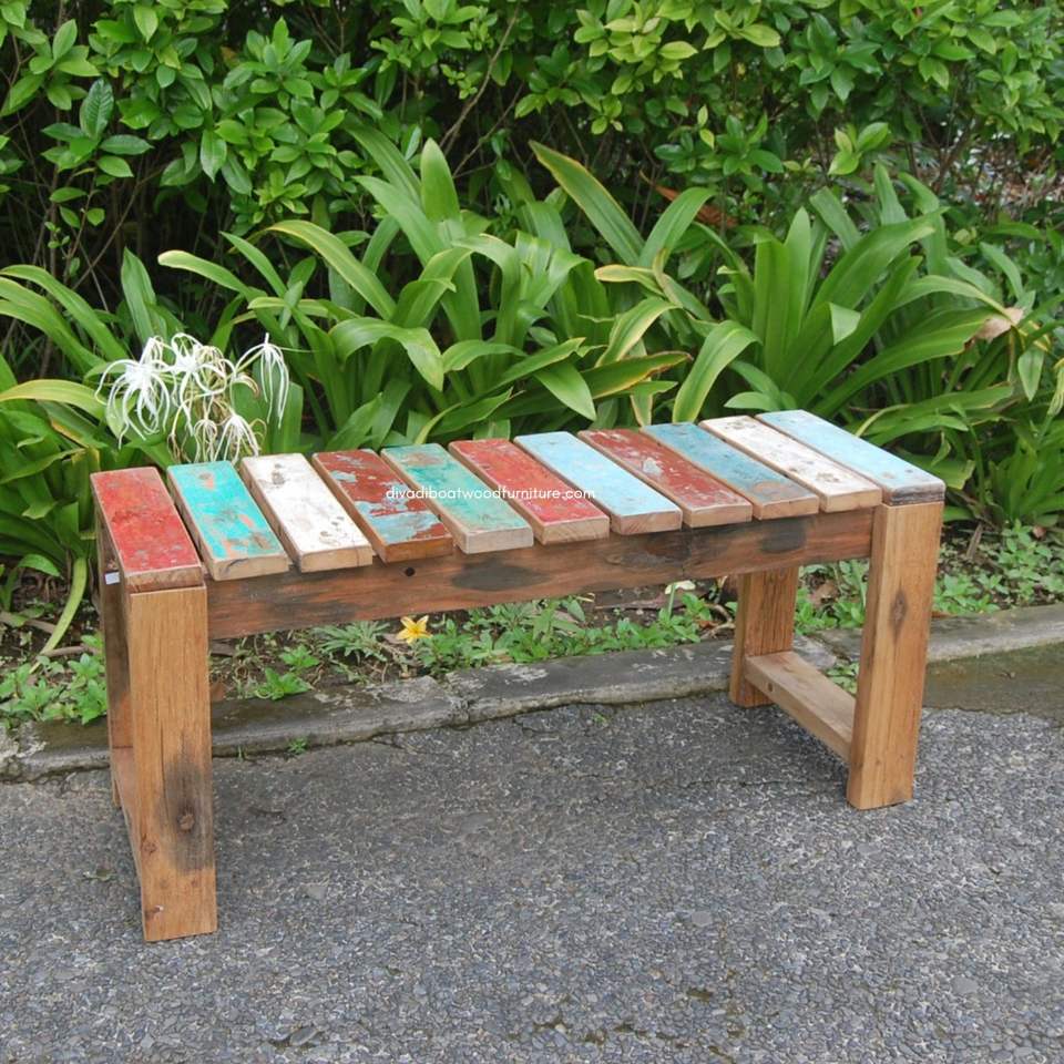 ม้านั่งเคล บีช โดดเด่นด้วยสีสันธรรมชาติจากไม้ซากเรือที่รีไซเคิล เหมาะสำหรับการนั่งพักผ่อนในสวนและพื้นที่ที่เป็นมิตรกับสิ่งแวดล้อม