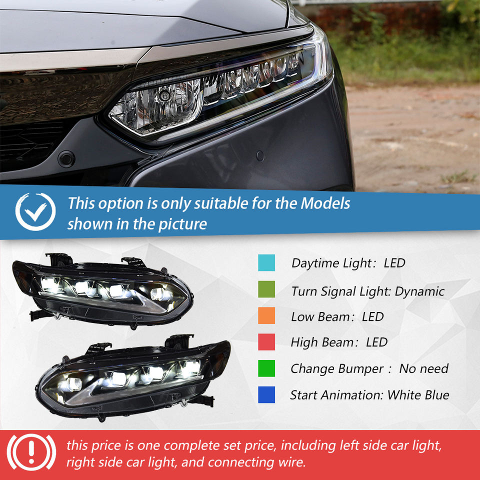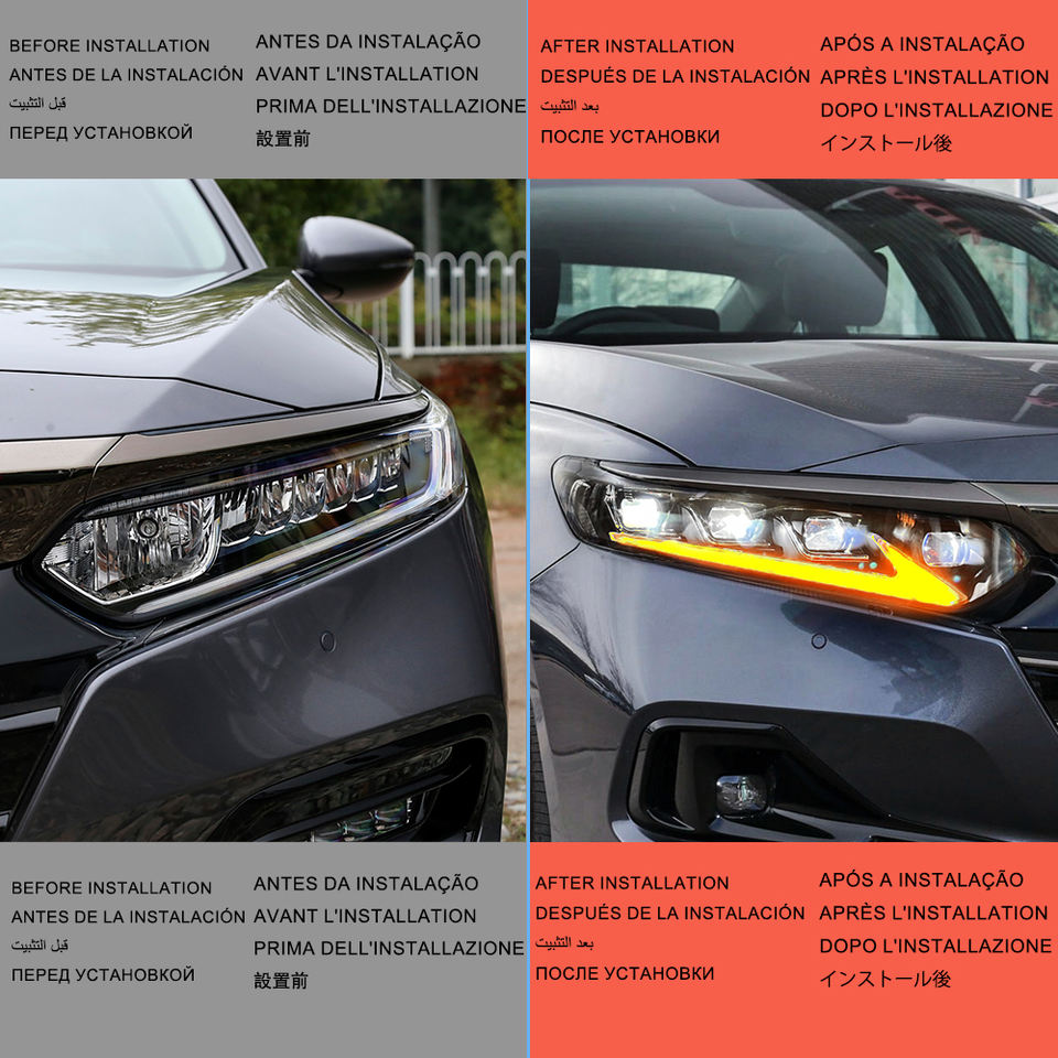 ชุดไฟหน้ารถยนต์ LED รุ่นล่าสุด ดีไซน์ ES พร้อมไฟไดนามิก อุปกรณ์เสริมสำหรับรถยนต์ Accord รุ่นที่ 10 และ 10.5 ปี 2018-2022