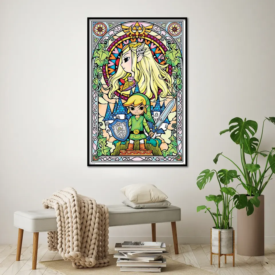 โปสเตอร์ภาพวาดกระจกสีธีมโบสถ์จากเรื่องตำนานเซลด้า