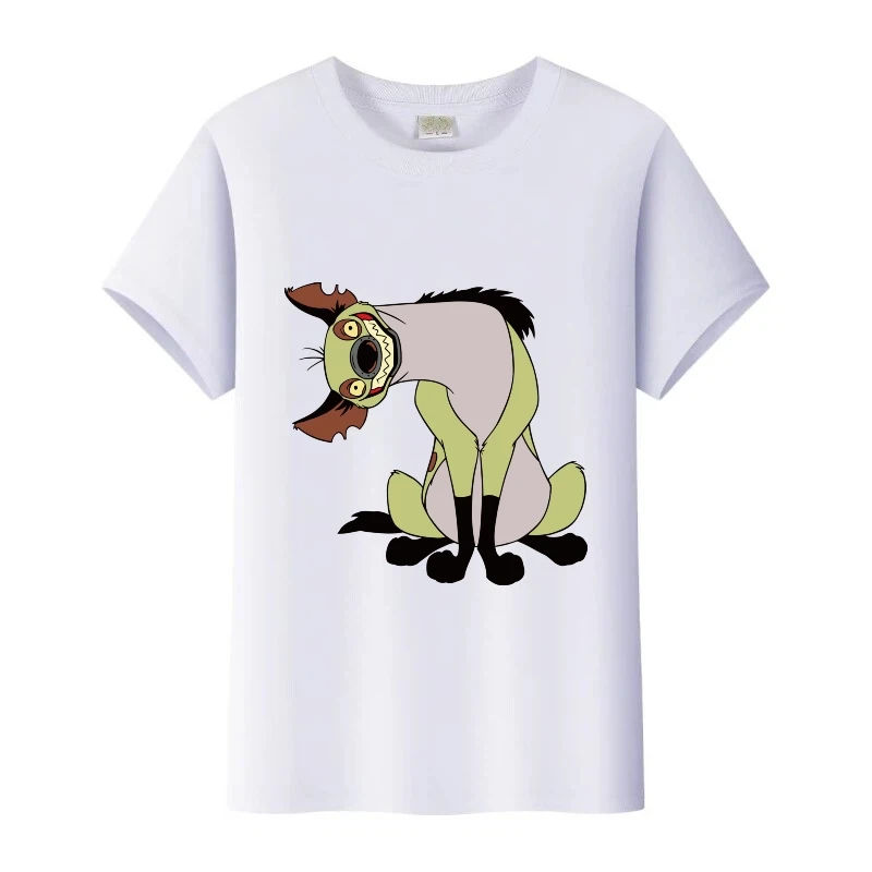 เดอะไลอ้อนคิง ไฮยีน่า กราฟิกส์ เสื้อยืดคอกลมสีขาวสำหรับผู้หญิง เสื้อยืดหลวมๆสำหรับฤดูร้อน เสื้อเด็กผู้ชาย เสื้อผู้ชาย เสื้อยืดเด็กแบบยูนิเซ็กซ์