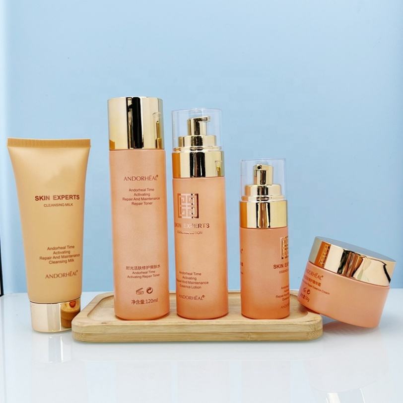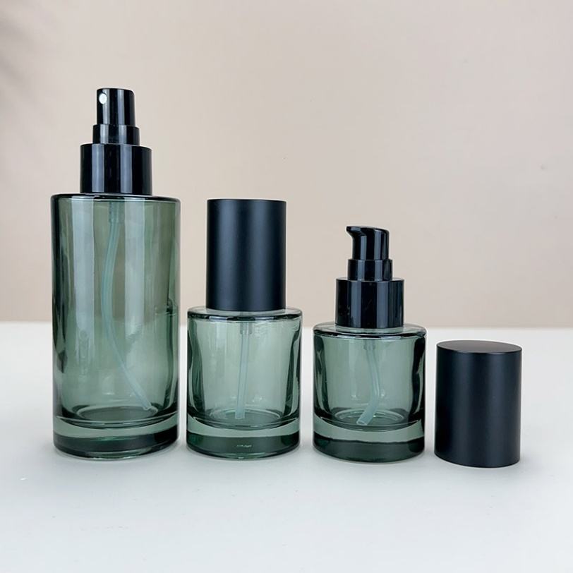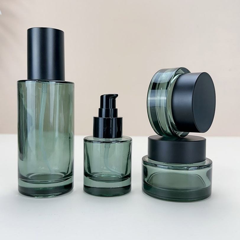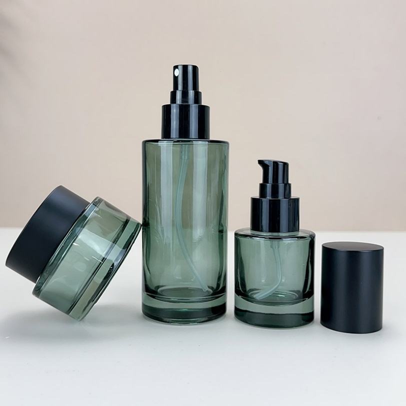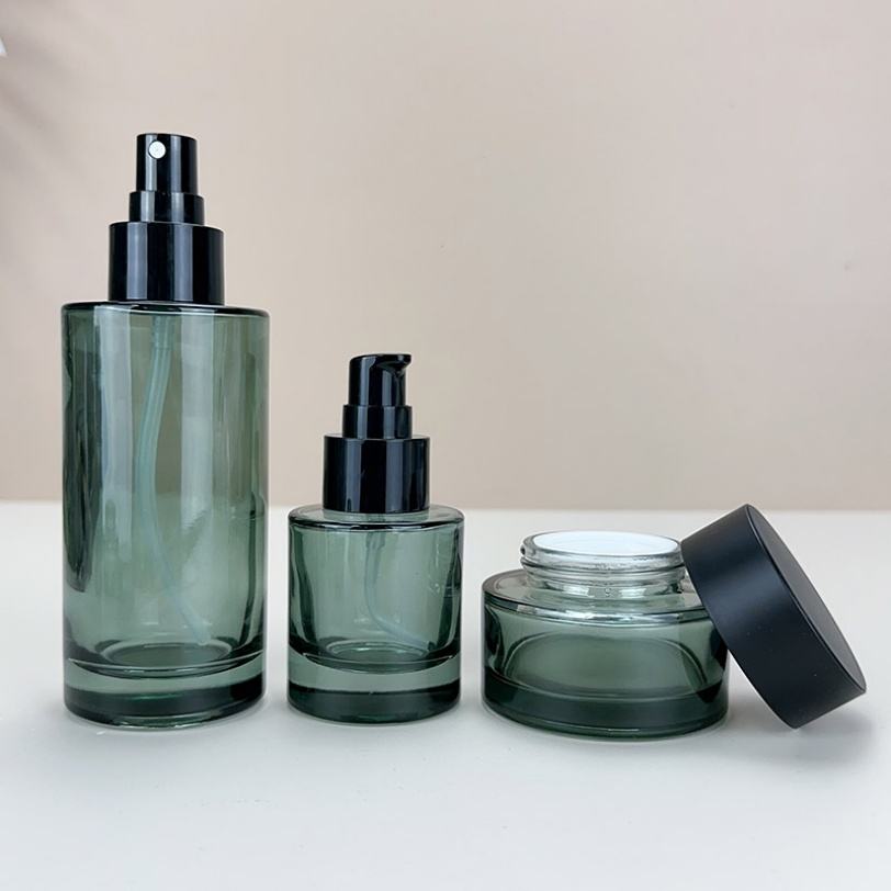 ผู้ผลิตขวดชุดเครื่องสำอางแบบกำหนดเอง ขนาด 30 มล. 100 มล. 120 มล. 50 กรัม ขวดหยดน้ำมันพร้อมหัวปั๊ม ขวดแก้ว
