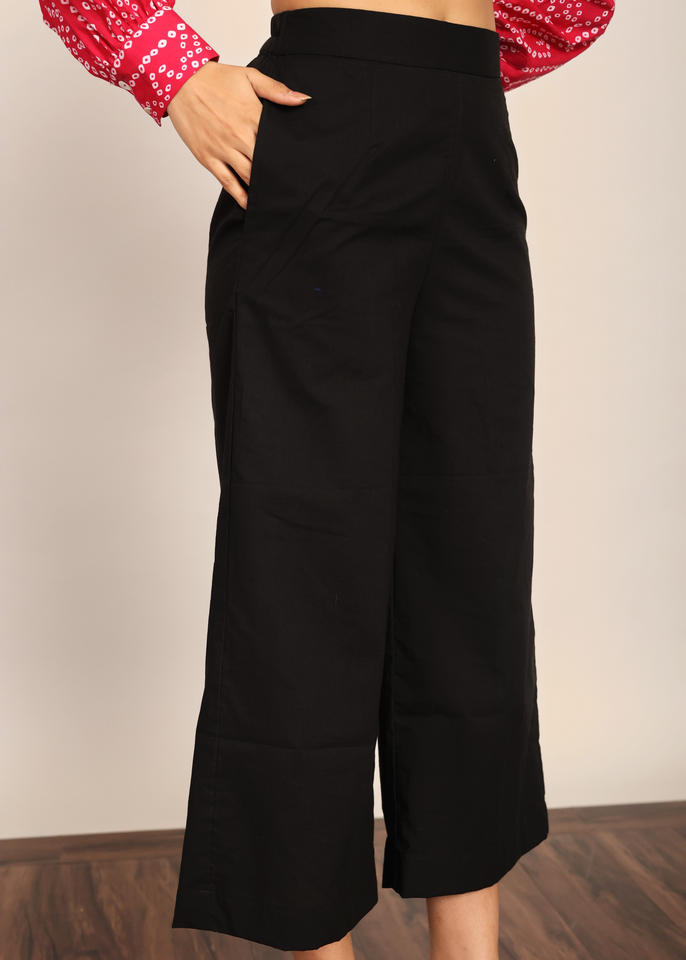 ชื่อสินค้า:กางเกงขายาวสีดำพิมพ์ลายเรียบ ทรงหลวม พร้อมเข็มขัดยางยืดด้านหลัง