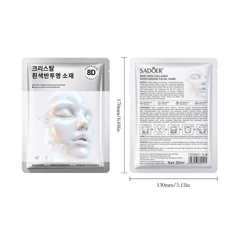 มาส์กบำรุงผิวหน้าสูตรคอลลาเจนสำหรับเด็ก SADOER ยอดนิยม ช่วยเติมความชุ่มชื้น บำรุงผิวให้กระจ่างใส