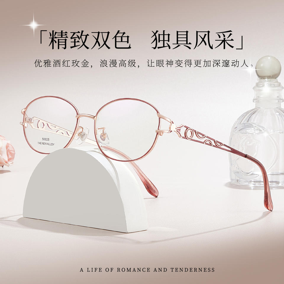 กรอบแว่นตาผู้หญิงทรงรีรุ่นใหม่ 50025 แบบเต็มกรอบ เลนส์เรซิ่นป้องกันรังสียูวี ผลิตที่ตานหยาง
