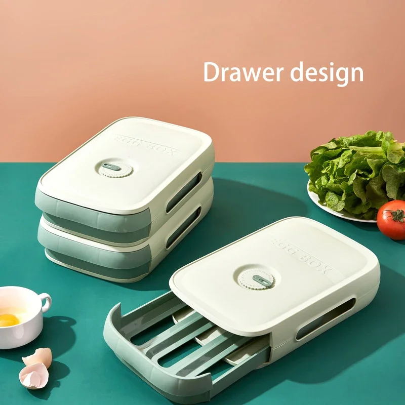 กล่องใส่ไข่แบบลิ้นชักใหม่กล่องใส่ของในตู้เย็นที่เก็บไข่แบบพลาสติกแบบวางซ้อนกันได้อุปกรณ์ในครัว