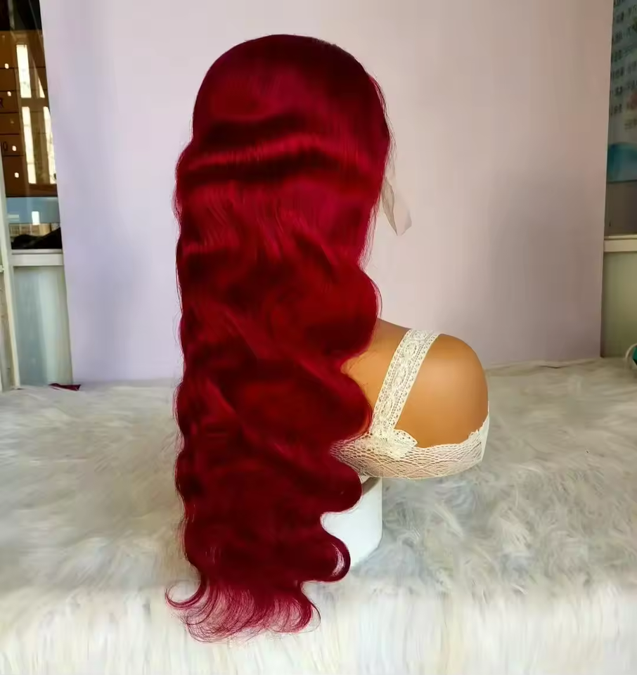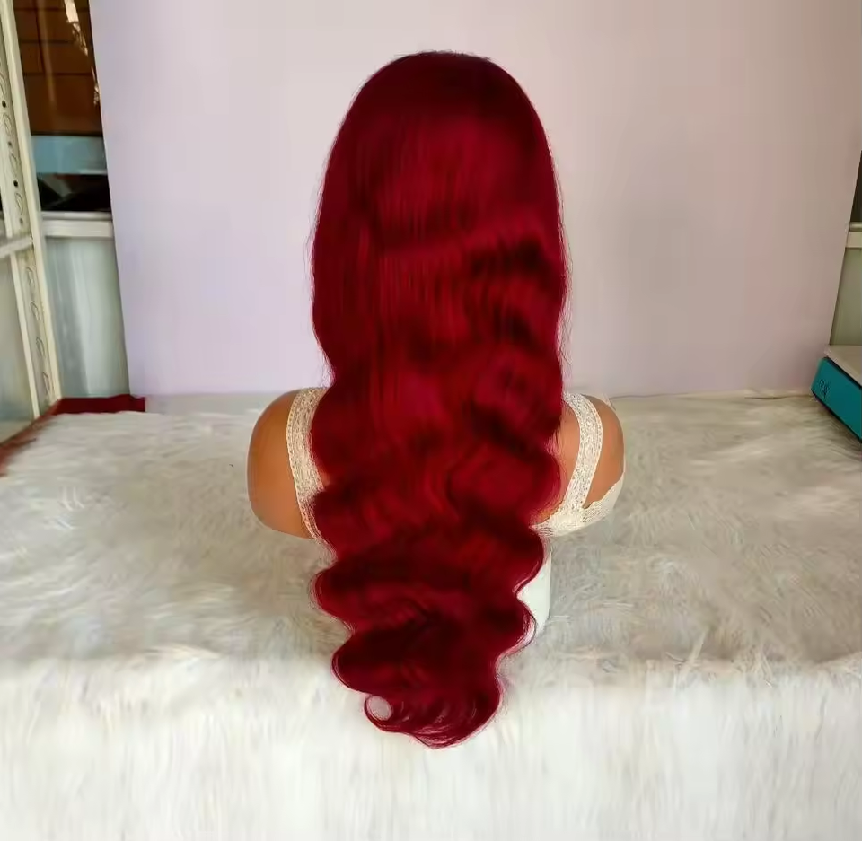 วิกผมลูกไม้แบบไม่ต้องใช้กาว สีแดงอมน้ำตาล แบบลอนธรรมชาติ ราคาส่งถูก วิกผมแท้