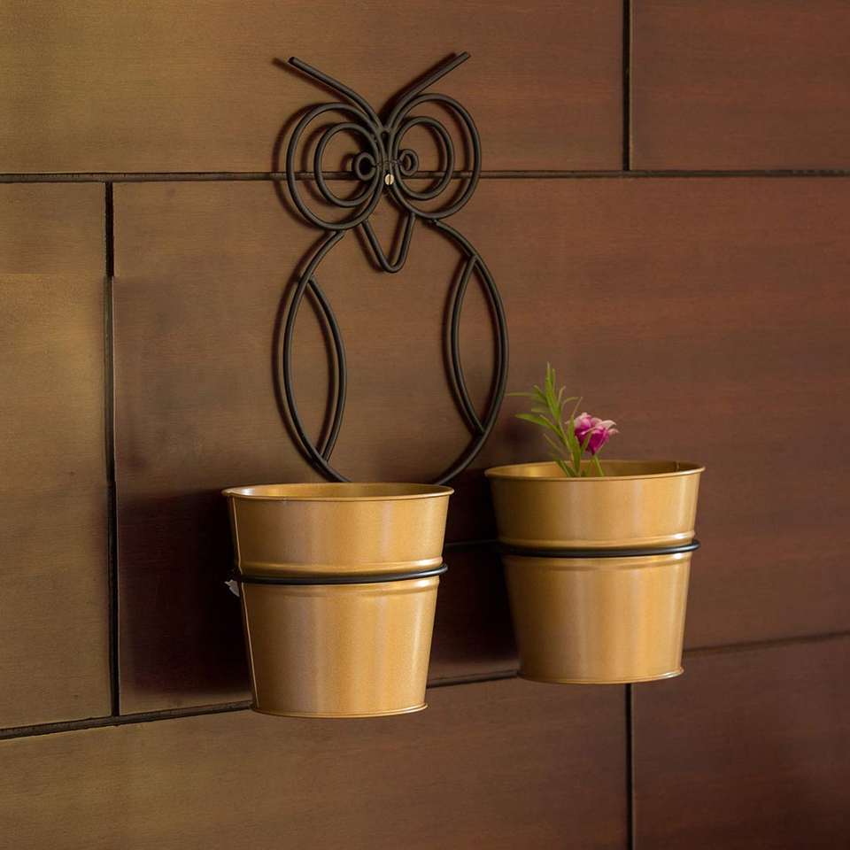 นกฮูกถังโลหะผนังแพลนเตอร์หม้อสำหรับพืชในร่มที่มีผู้ถือ (ชุดของ2เหล็กชุบสังกะสี)-ปลูกติดผนังกับ S