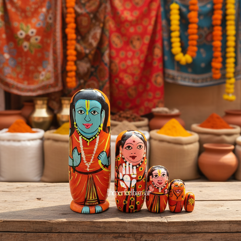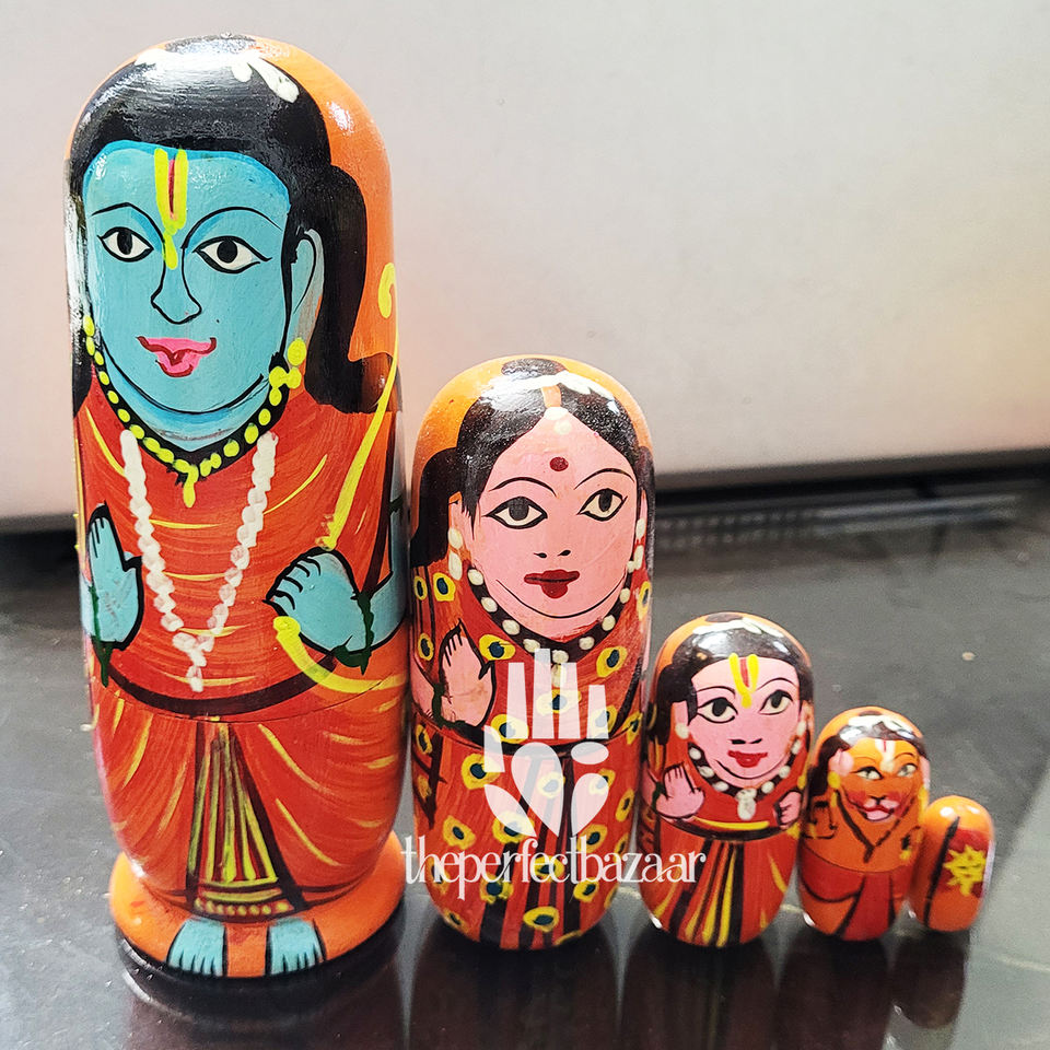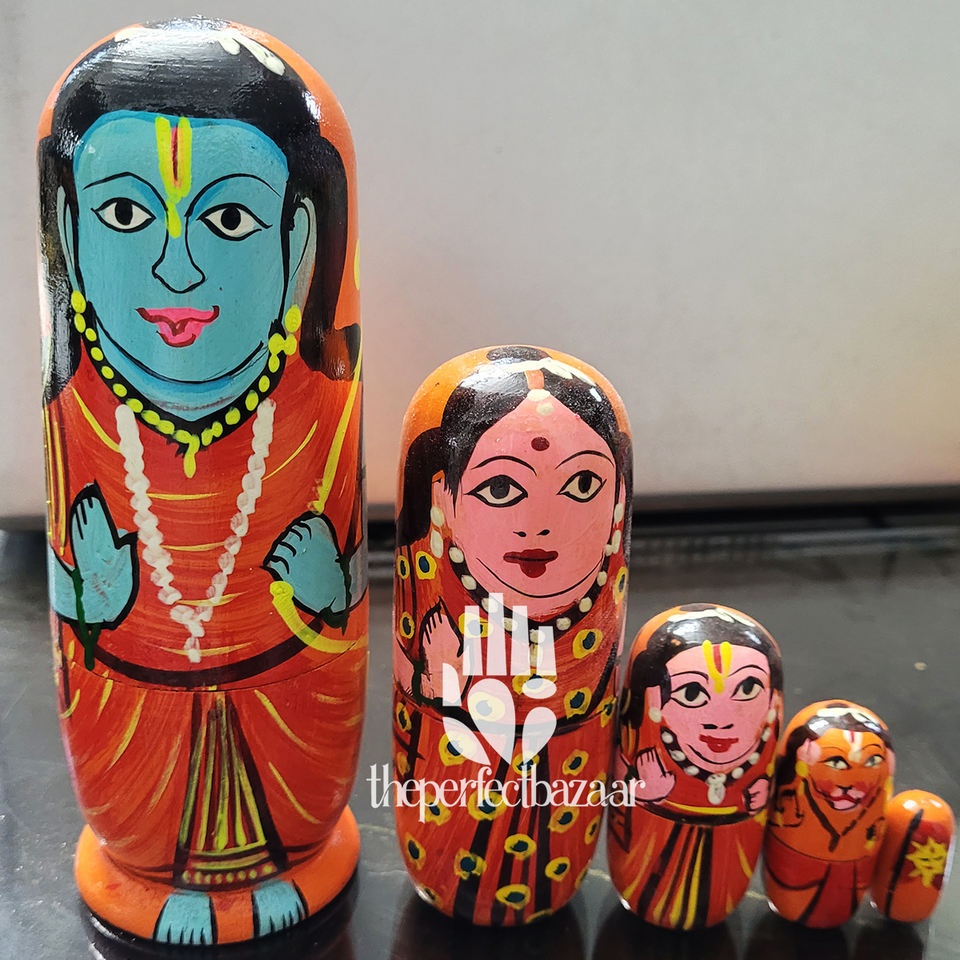 ตุ๊กตาไม้ซีวาแบบซ้อนกันได้ ชุด 5 ตัว ผลิตในอินเดีย จาก The Perfect Bazaar