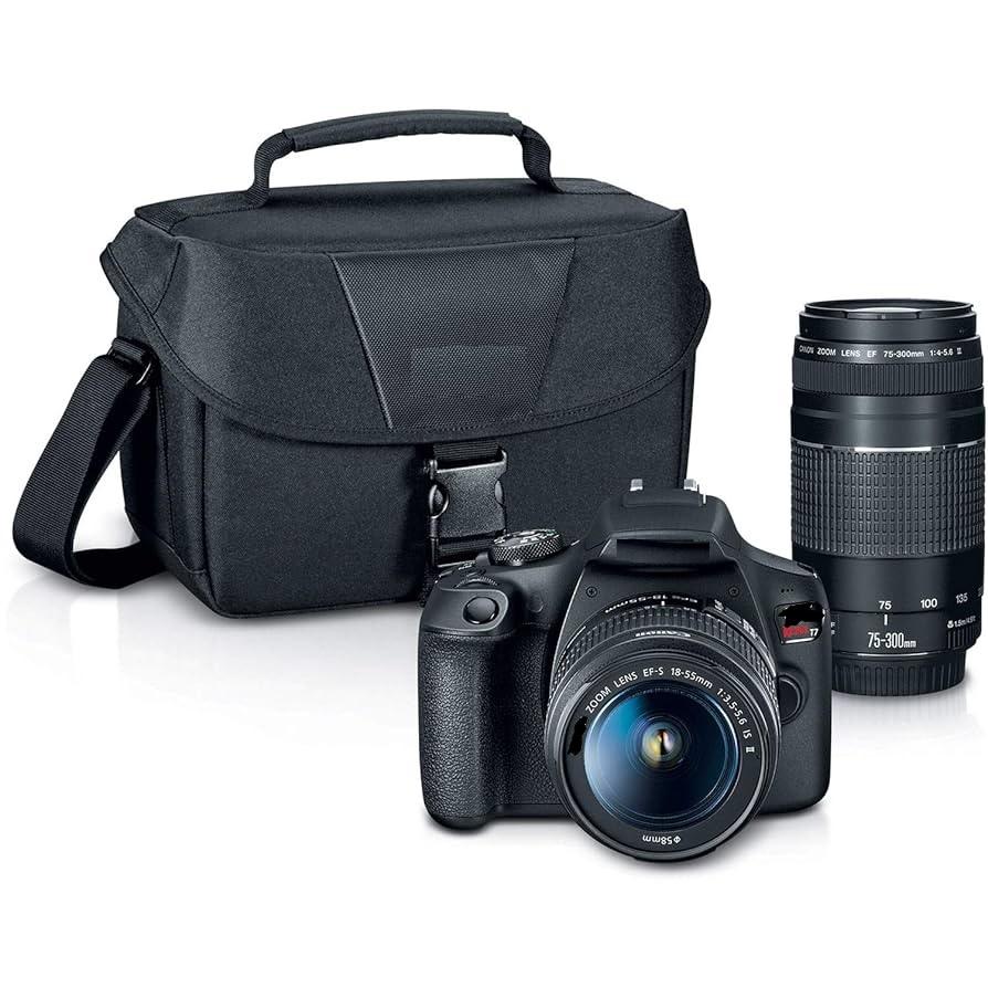 The Promo Rebels T7 DSLR Camera 2 Lens Kit Includes EF18-55mm EF75-300mm Lenses SD Card Rechargeable Battery Video Capture Black