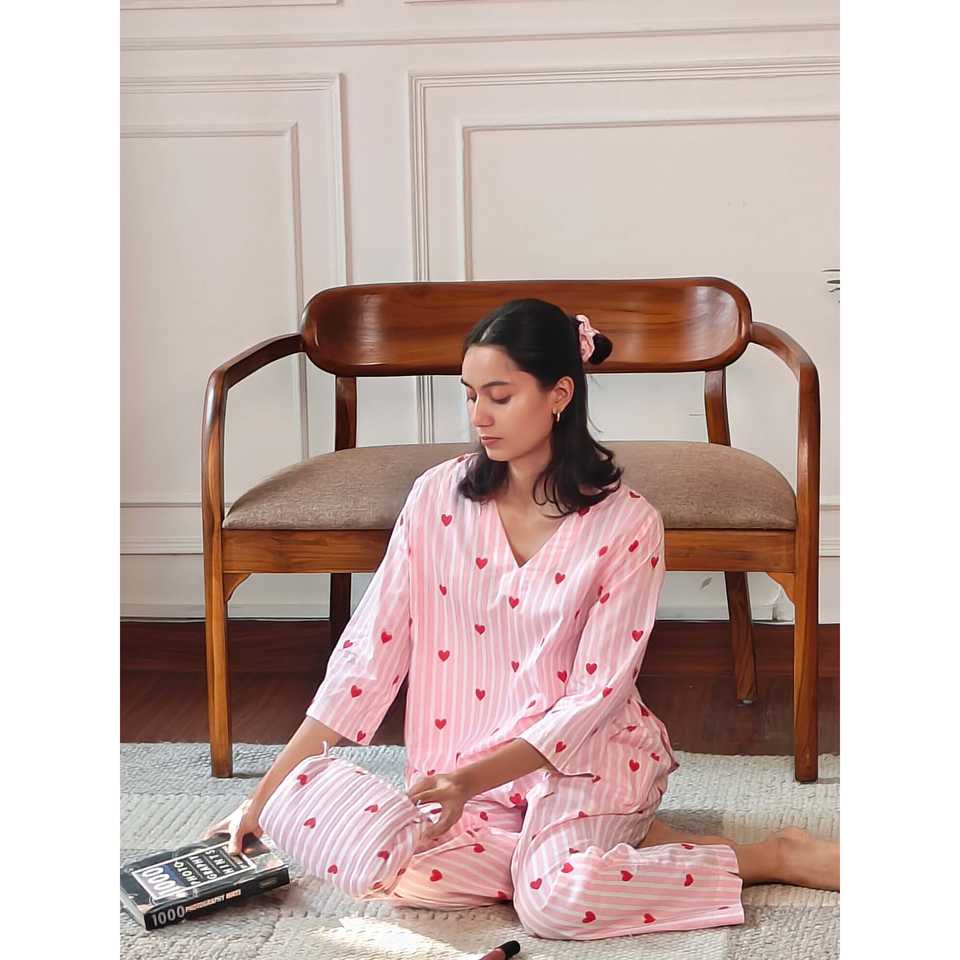 ชุดนอน The Quince Life Heartbeat สีชมพู ไซส์ XS น้ำหนัก 0.0 กรัม ผลิตในแคนาดา