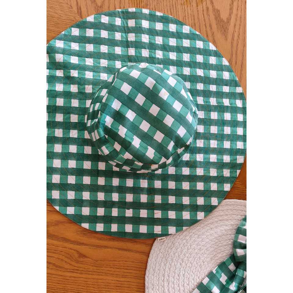 The Quince Life Jungle Mustard/Green Checkered Reversible Sports Beach Hat for Outdoor Activities