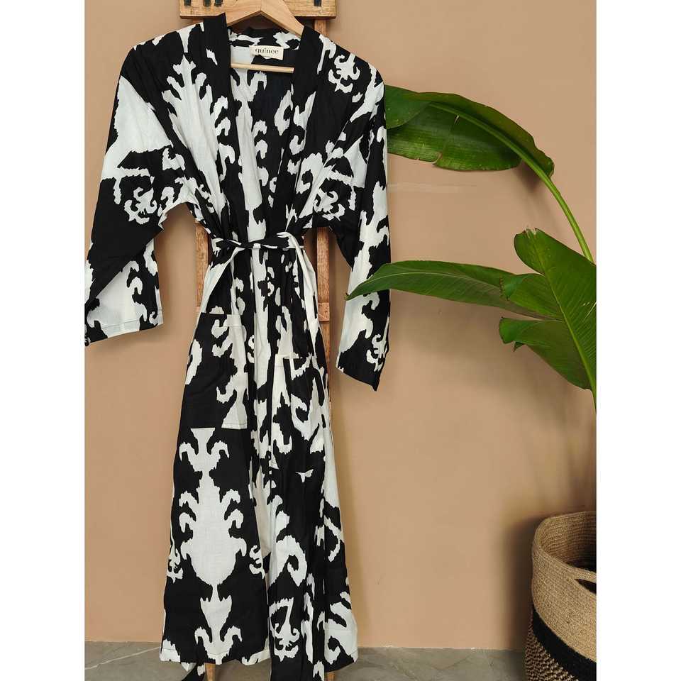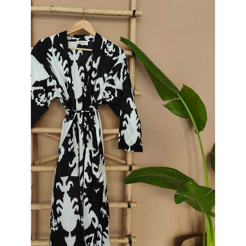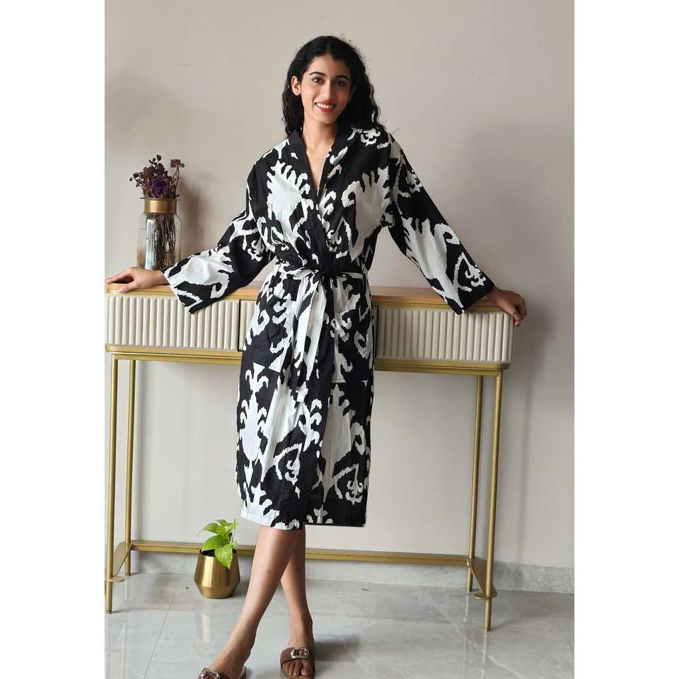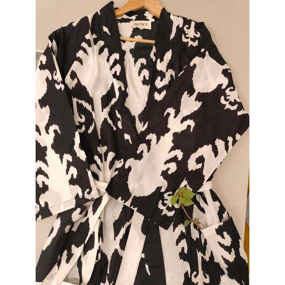 The Quince Life Women's Black Ikat Geometric Lightweight Robe Comfortable Sleepwear by Shopify