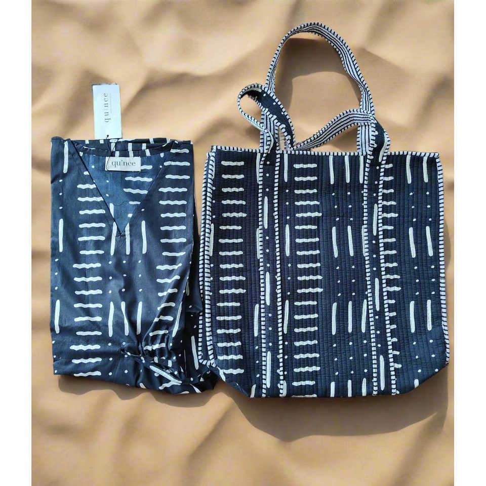 ชุดเดรสลำลองพร้อมกระเป๋าถือเข้าชุด The Quince Life รุ่นหยินหยาง ไซส์เดียว สีดำเดนิม