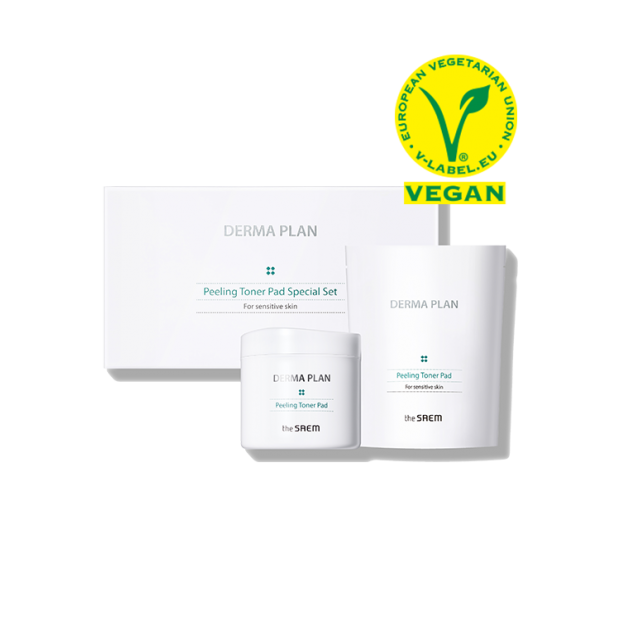 เซ็ตพิเศษแผ่นโทนเนอร์ผลัดเซลล์ผิว The Saem Derma Plan สำหรับผิวแพ้ง่าย ส่วนผสมวีแกน ใช้สำหรับผิวหน้า