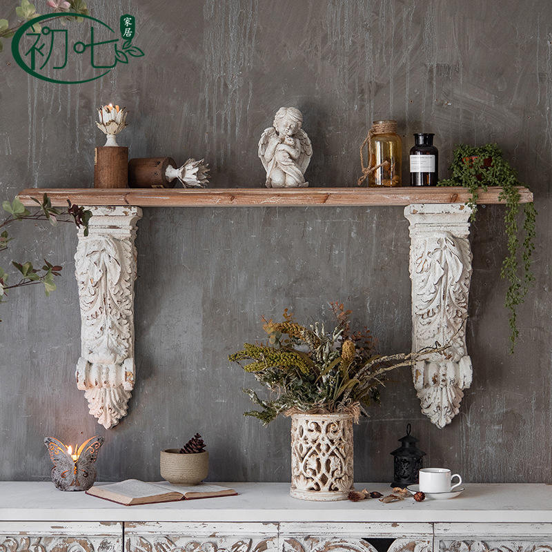 ชั้นวางของติดผนังตกแต่งสไตล์วินเทจวันที่เจ็ด ทำจากไม้เนื้อแข็งแกะสลักทรงสี่เหลี่ยมผืนผ้า สไตล์ฝรั่งเศส สำหรับตกแต่งห้องนั่งเล่น