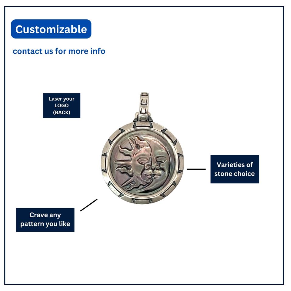จี้เงินแท้ 925 รูปทรงกลม ประดับมุกดำ ดีไซน์พระอาทิตย์ ทนทาน เหมาะสำหรับใส่ลำลอง/เล่นกีฬา | OEM