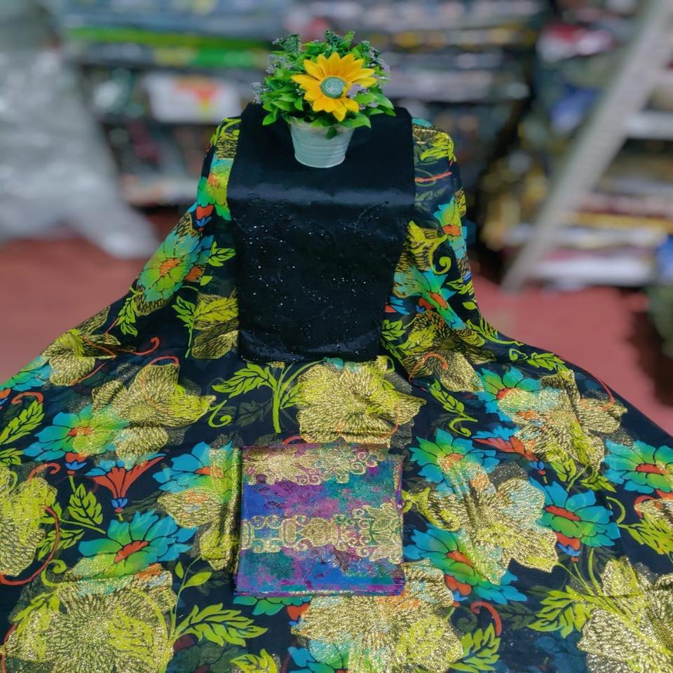 ผ้าชุดงานแต่งงานลายดอกไม้พื้นดำ รุ่นใหม่ล่าสุดจาก The Timeless Grace ลายโซมาเลียนฟรานซาวี แจ็คการ์ด สลับ พร้อมดีไซน์ลายดอกไม้และพื้นสีดำ