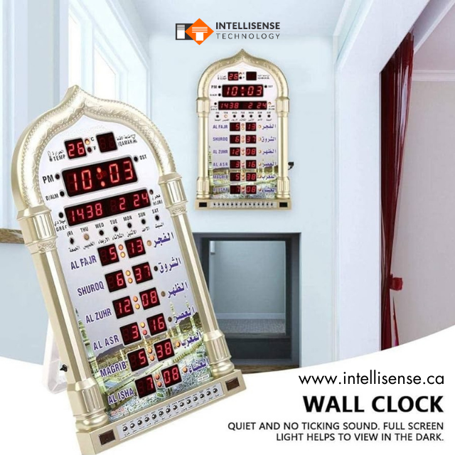 สุดยอดของขวัญเดือนรอมฎอนรูปแบบที่บรรจุ4008สีดำมัสยิดสวดมนต์นาฬิกาแขวนผนังด้วยจอแสดงผลดิจิตอลขนาดใหญ่ที่เรียบง่าย
