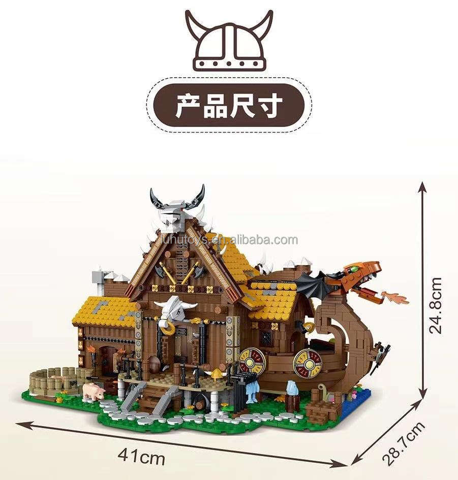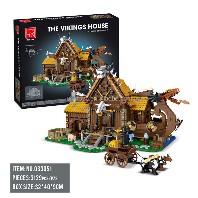 บล็อกตัวต่อแบบโมดูลาร์ บ้านชาวไวกิ้ง MOC 033051 วิวชนบท ชุดตัวต่อแบบชนเผ่า ของเล่นบล็อกหมู่บ้าน ของขวัญสำหรับเด็กชายและเด็กหญิง