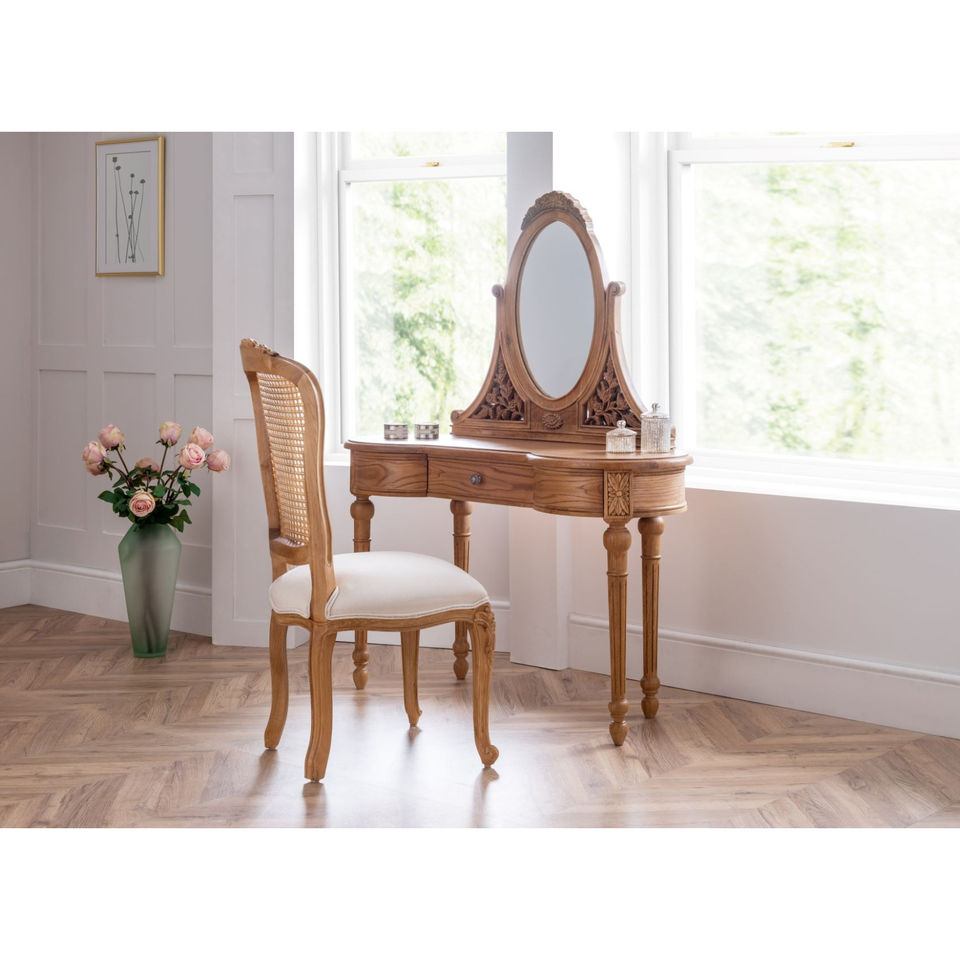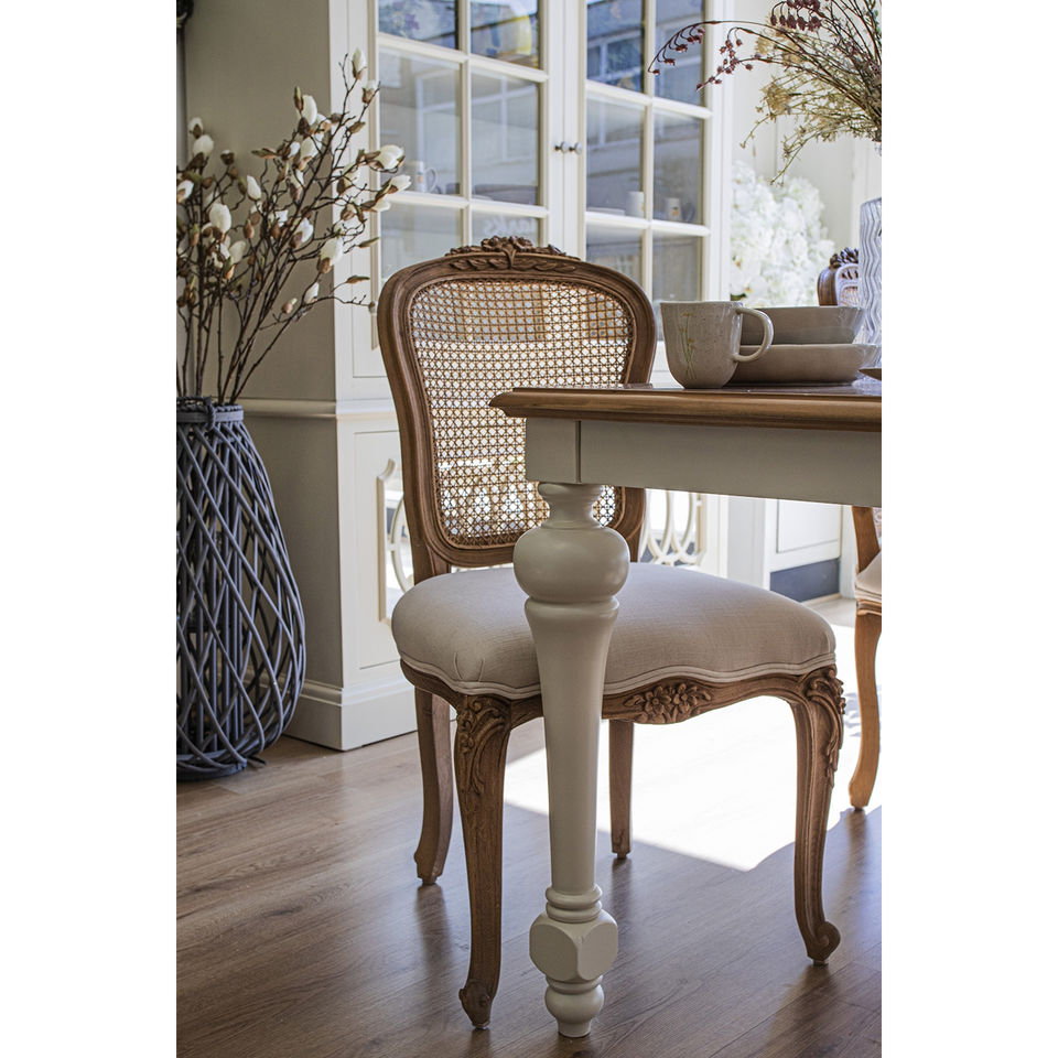 เก้าอี้นวมสไตล์ฝรั่งเศส Villeneu ทำจากไม้มะฮอกกานีเนื้อแข็งคุณภาพสูง พร้อมพนักพิงหวาย สำหรับใช้ภายในอาคาร