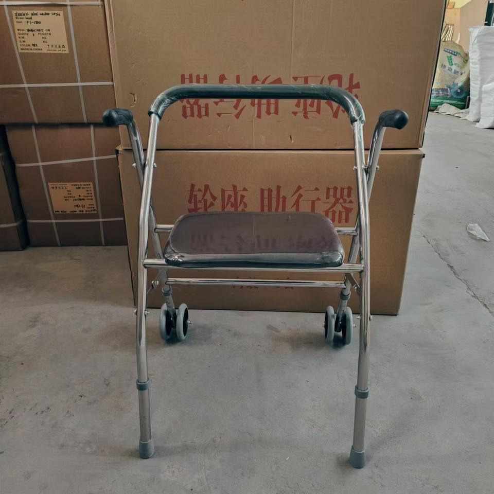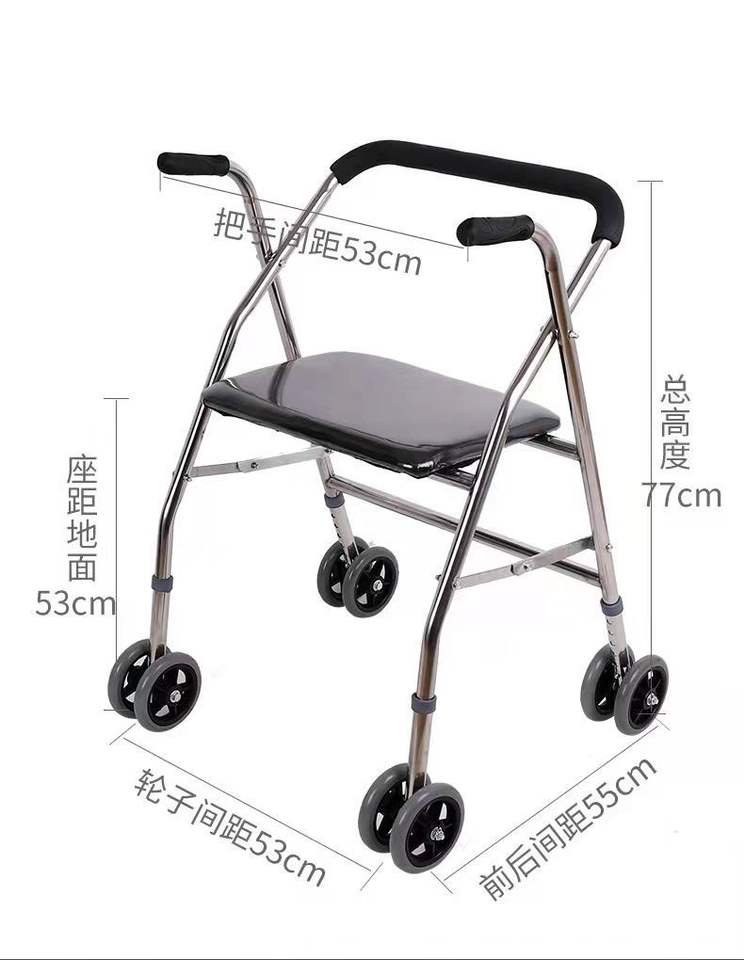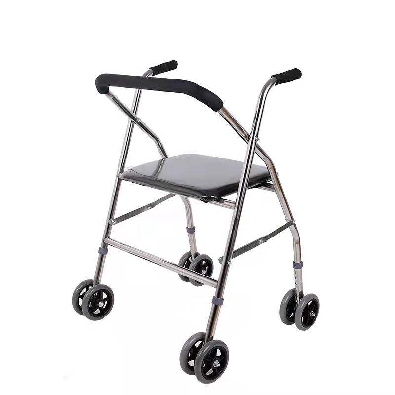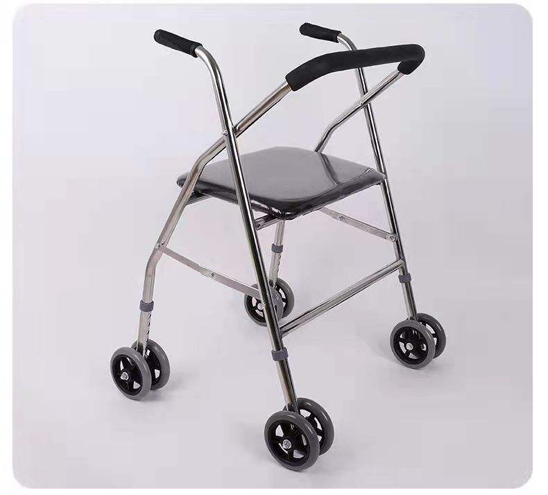 รถช่วยเดินสำหรับผู้สูงอายุ, รถช่วยเดินแบบพับได้ทำจากสแตนเลสพร้อมล้อ, ไม้ค้ำยันแบบพกพาสี่ขาพร้อมที่นั่ง 22 ท่อ