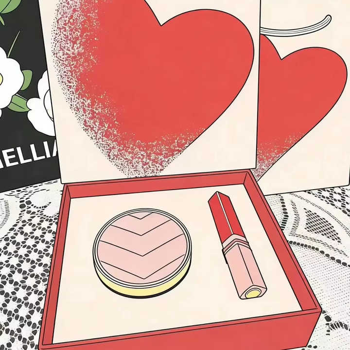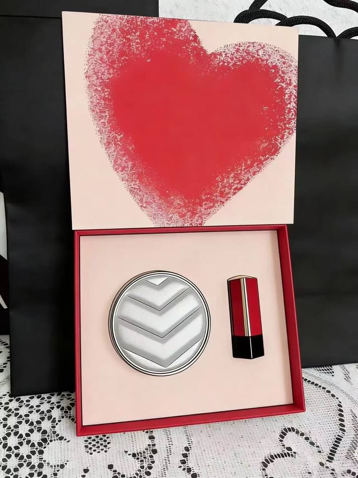 ชุดเครื่องสำอางสุดหรูที่ประกอบด้วยคุชชั่นปกปิดเต็มรูปแบบและลิปสติก เป็นตัวเลือกที่ยอดเยี่ยมสำหรับเป็นของขวัญ