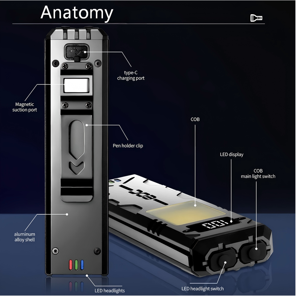 ไฟฉาย EDC รุ่นใหม่แบบพกพาอเนกประสงค์ พร้อมหน้าจอแสดงผล ไฟส่องสว่างแบบหนีบแม่เหล็ก ใช้สำหรับกิจกรรมกลางแจ้ง ฉุกเฉิน และทำงาน