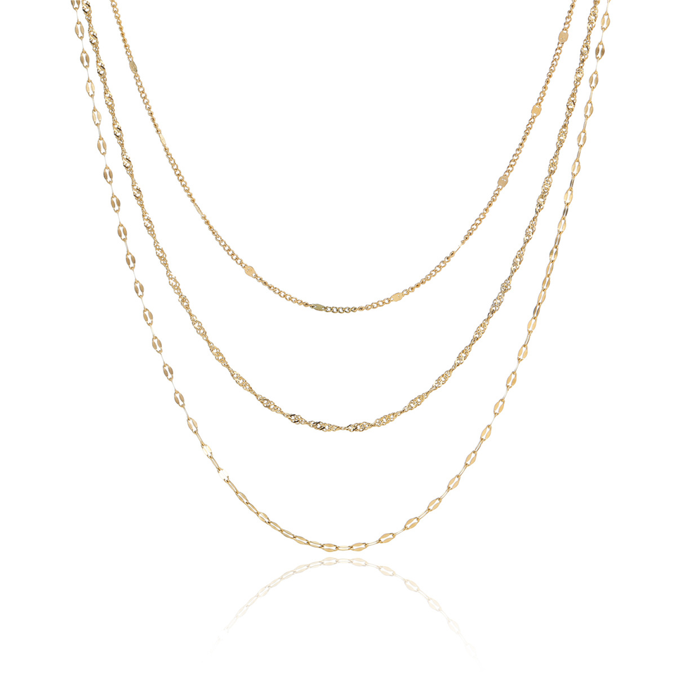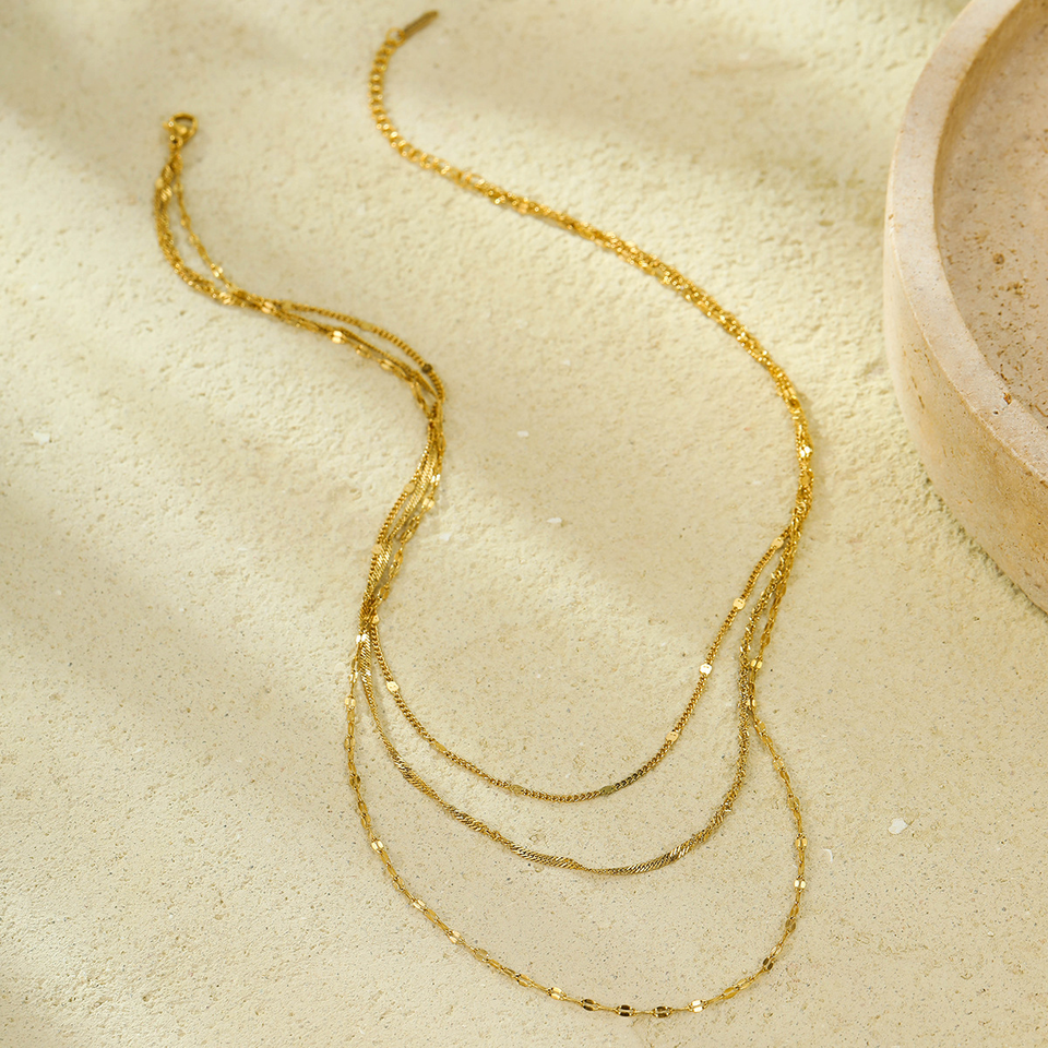 สร้อยคอสแตนเลสใหม่ไม่ซีดจาง ผู้หญิงสามารถสวมใส่ได้ด้วยสร้อยคอแบบเรียบสามชั้นที่ประดับกับกระดูกไหปลาร้า