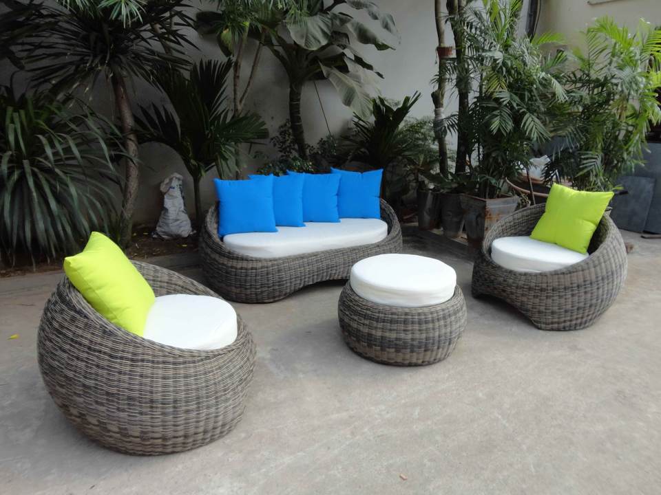 ชุดโซฟาสีขาวดีไซน์เป็นเอกลักษณ์:หวายหลายสี