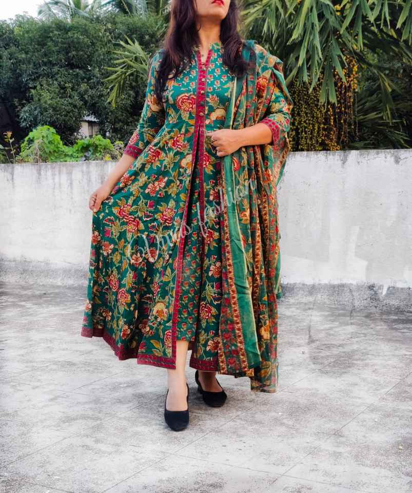 ชุดผ้าฝ้าย Anarkali 3 ชิ้น TheFabira ลายพิมพ์บล็อกด้วยมือ เอวธรรมชาติ ซักได้ น่ารัก เป็นมิตรกับสิ่งแวดล้อม กางเกงเข้าชุดหวานๆ