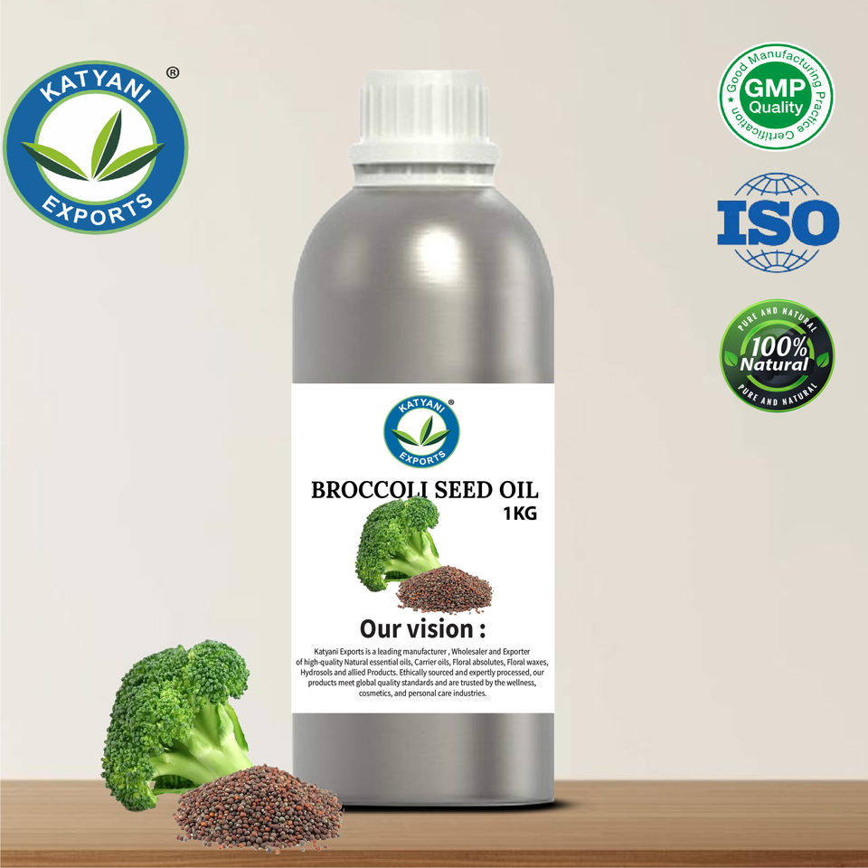 น้ำมันเมล็ดบรอกโคลีเกรดบำบัด (Brassica oleraceum) สกัดเย็น สำหรับใช้ในเครื่องสำอาง ผู้ส่งออกในอินเดีย