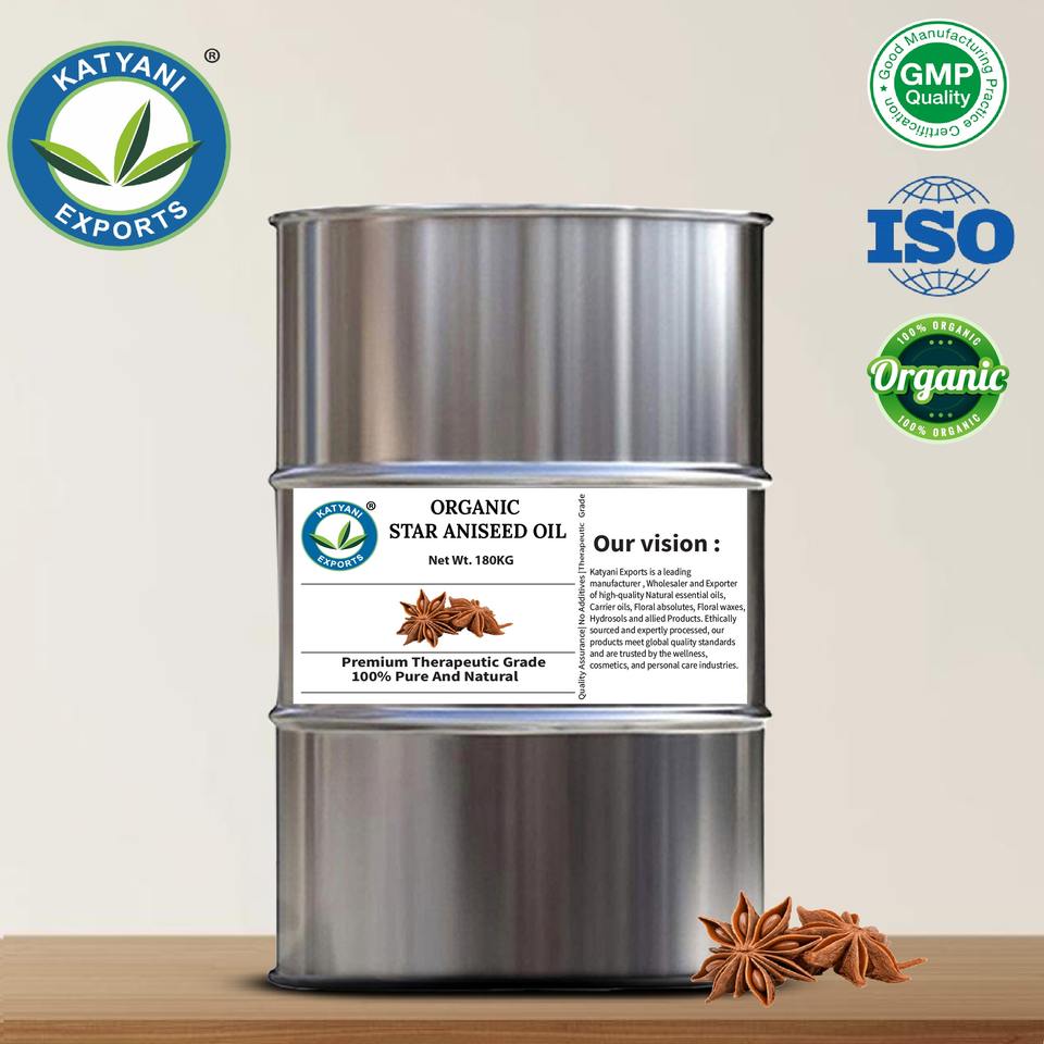 Therapeutic Grade Organic Star Aniseed Essential Oil (Illicium verum) Steam distilled Aromatherapy Formulation Exporter In india