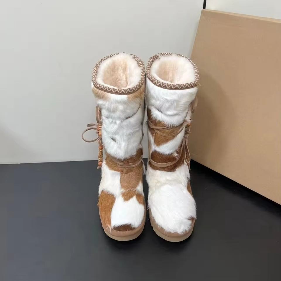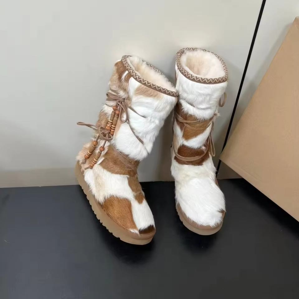 รองเท้าบูทหิมะหนังแกะคุณภาพสูง น้ำหนักเบา ดีไซน์สวย สำหรับฤดูหนาว แบบสั้น สไตล์เดินสบาย