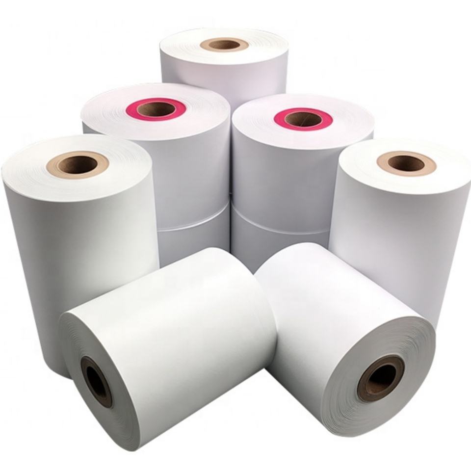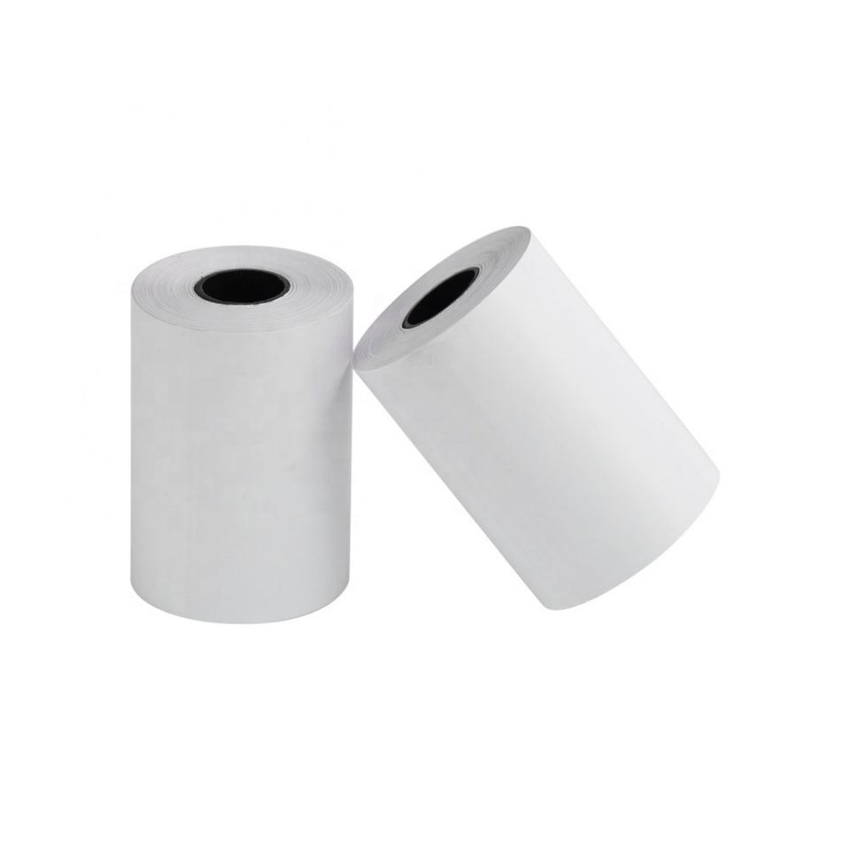 กระดาษม้วนความร้อนสำหรับเครื่อง POS ขนาดเล็ก คุณภาพสูง ผลิตจากเยื่อไม้บริสุทธิ์ 100% ความสว่างสูง สำหรับเครื่อง POS แบบพกพา