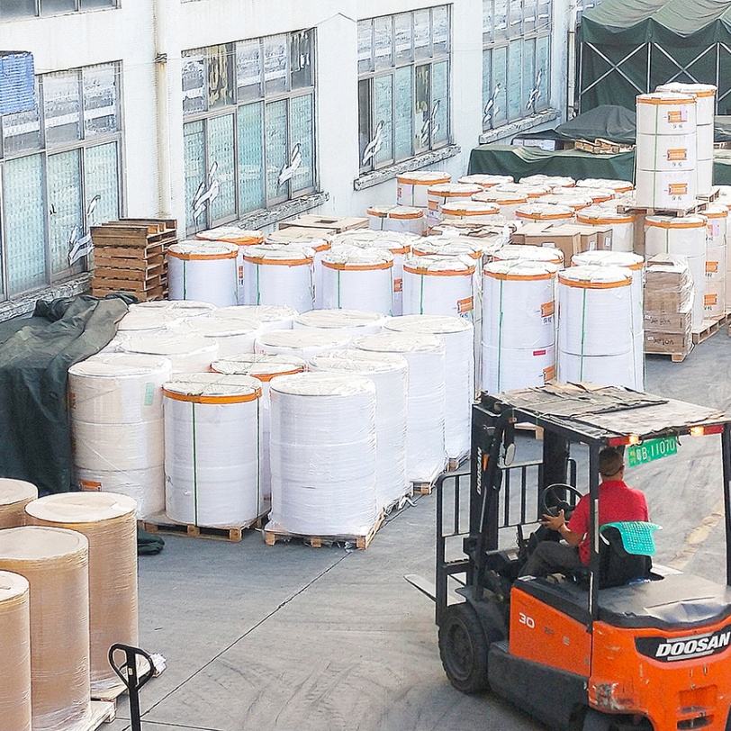 กระดาษความร้อนแบบม้วนจัมโบ้ 790 มม. ปราศจากสาร BPA และ BPS สำหรับเครื่องพิมพ์ใบเสร็จ เครื่อง POS สามารถตัดเป็นความกว้าง 80 มม. 76 มม. 57 มม. ได้
