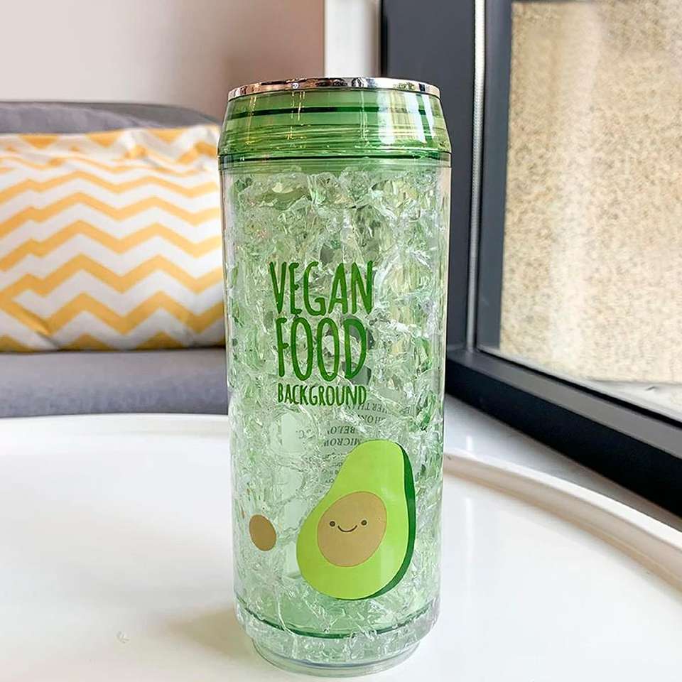 แก้วเก็บความเย็นสุญญากาศลายอะโวคาโดน่ารัก ความจุ 500 มล. พลาสติก พกพาสะดวก พร้อมแผ่นไฮโดรเจล