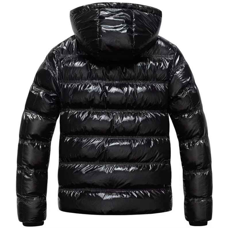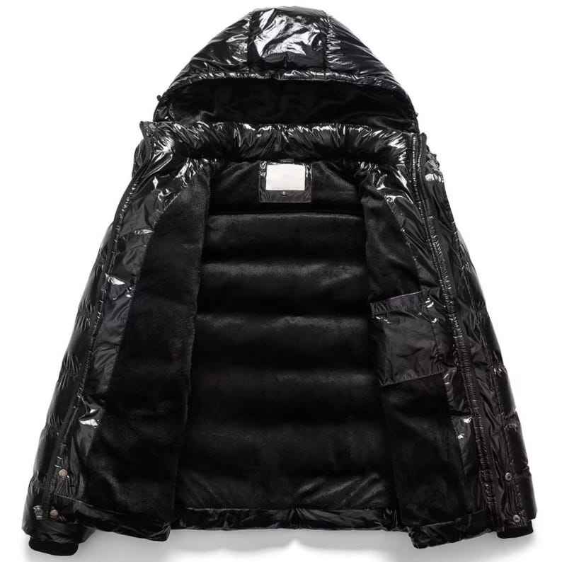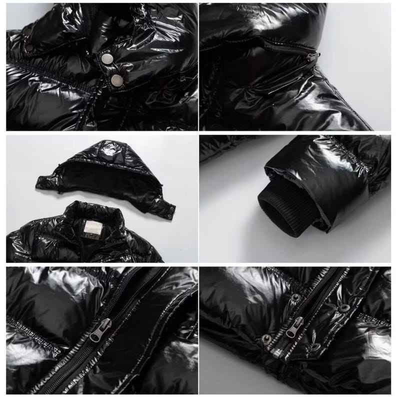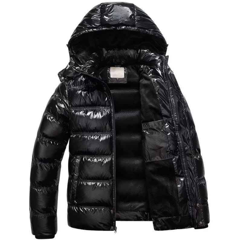 เสื้อแจ็คเก็ตพัฟเฟอร์ผ้ามันเงาสำหรับฤดูหนาว แบบยูนิเซ็กซ์ น้ำหนักเบา บุใยสังเคราะห์ กันลม กลับด้านได้ กันน้ำ มีโลโก้ด้านหน้า
